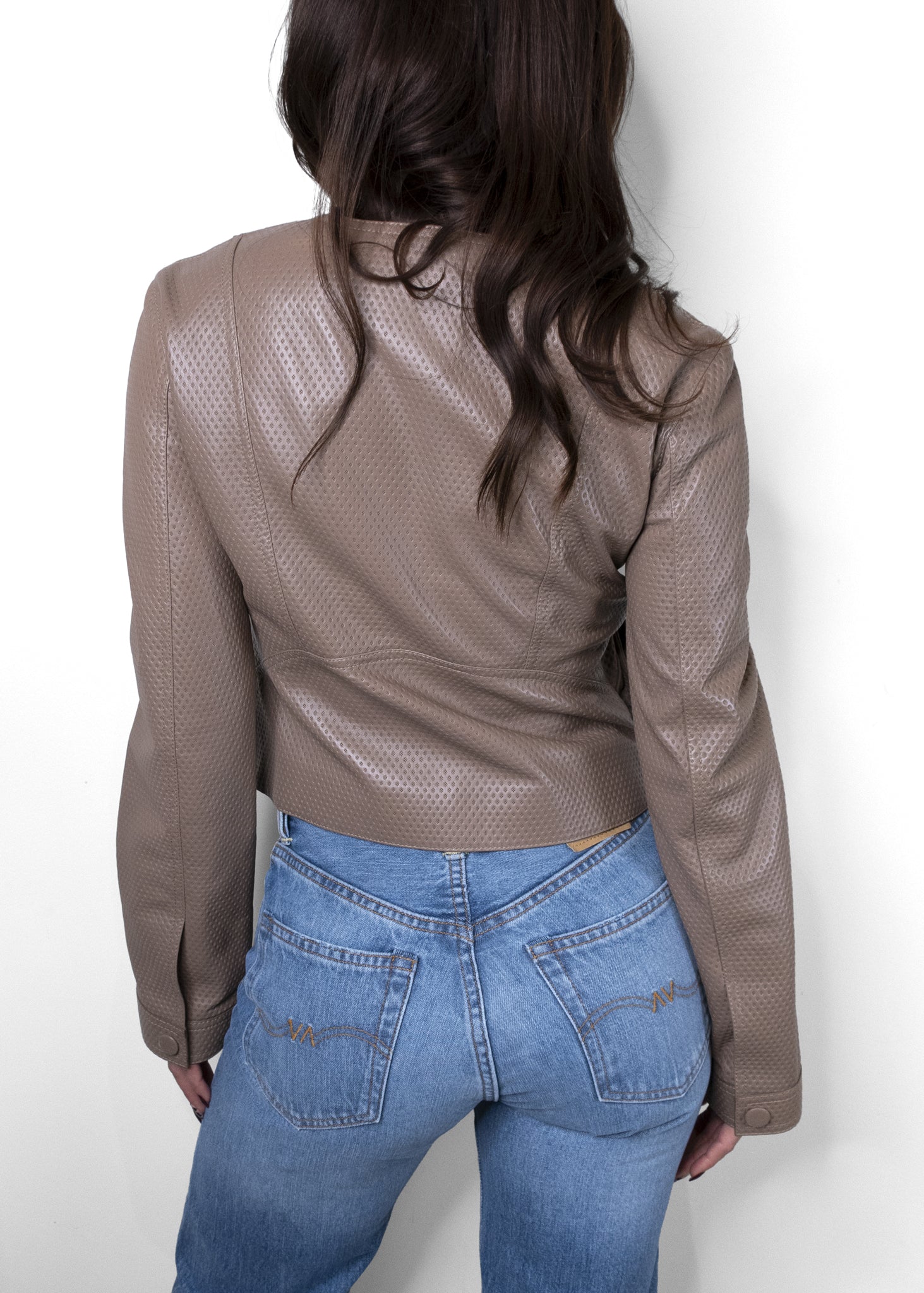 The Fendi Leather Baguette Buckle Jacket is a stylish and edgy piece that combines sleek leather with a unique mesh design. Featuring a bold buckle detail and the iconic Baguette shape, this jacket offers a modern take on luxury outerwear. Perfect for adding a touch of sophistication and structure to any outfit.
