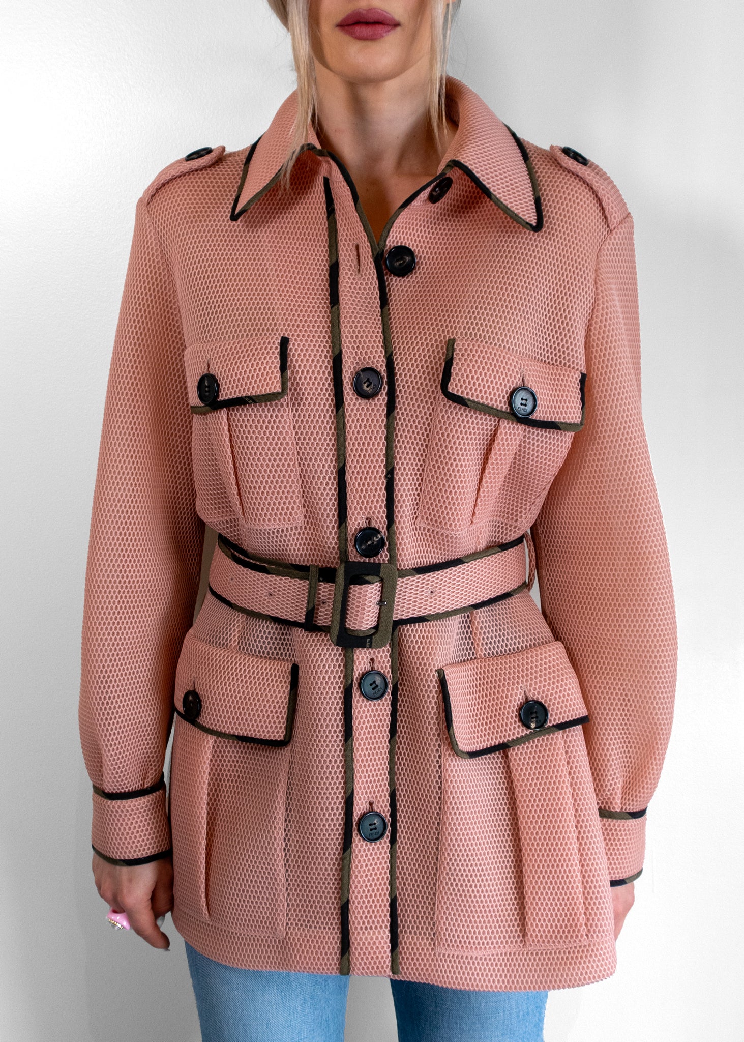 Fendi Safari Camouflage-trimmed Pink Jacket