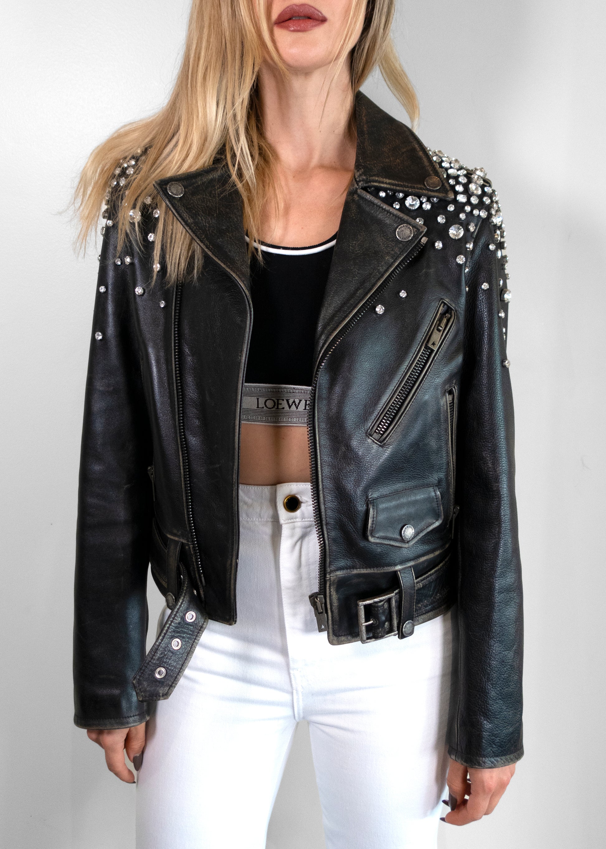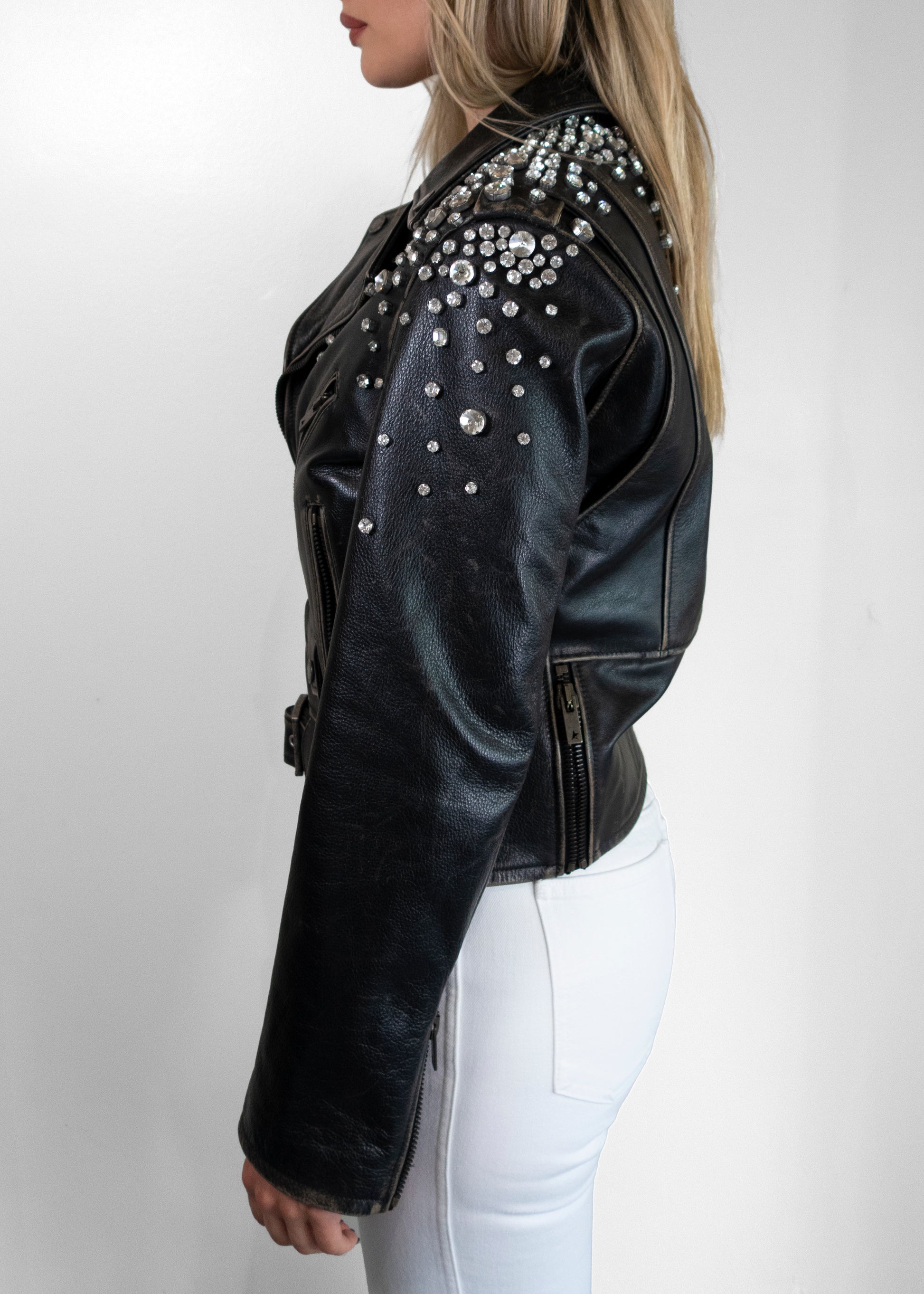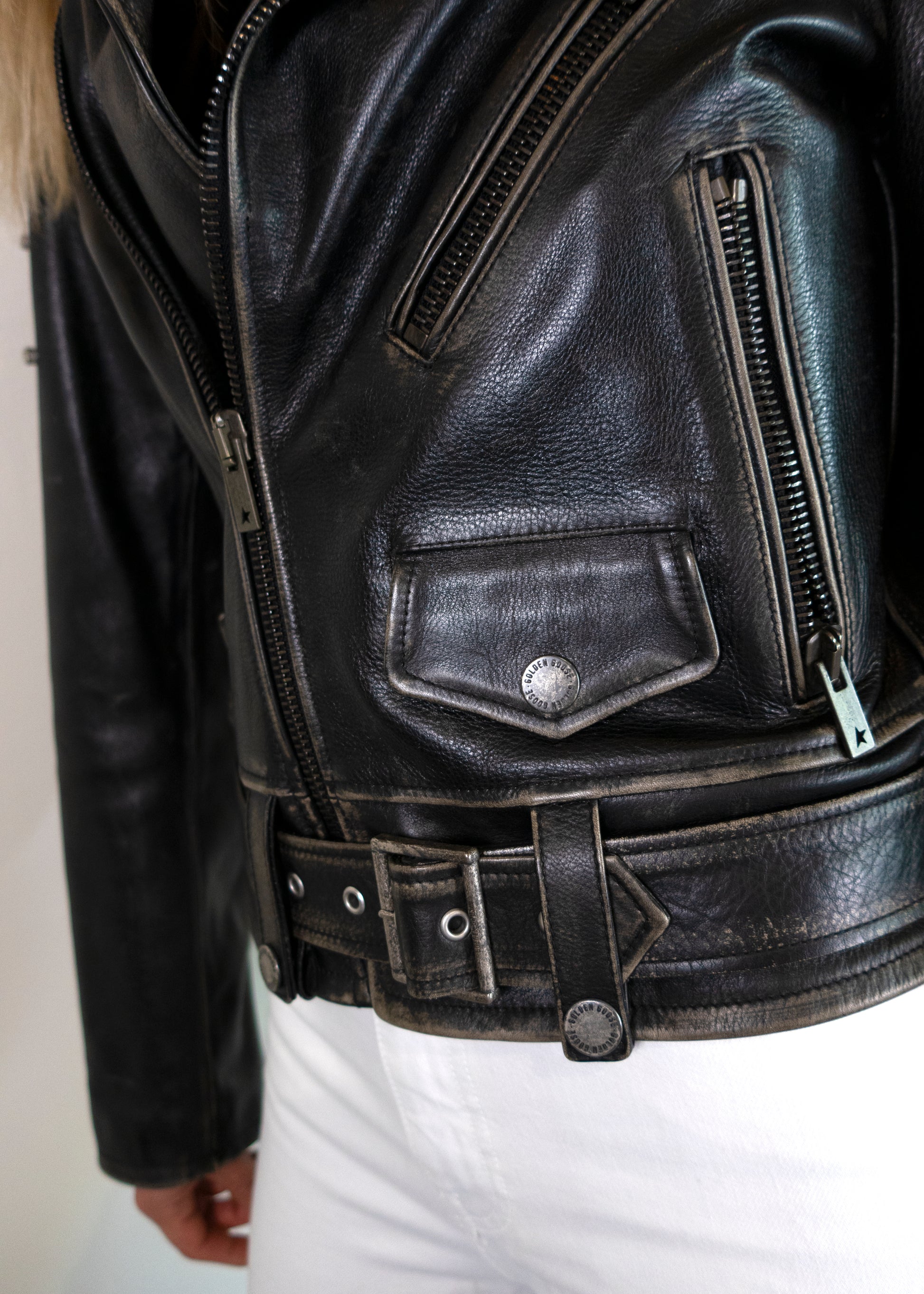 Golden Goose's Leather Biker Jacket blends classic rebellious style with a modern edge. Crafted from premium leather, it features a sleek, fitted silhouette, asymmetric zip closure, and bold metallic hardware. The jacket is designed with attention to detail, offering a timeless statement piece that elevates any outfit with effortless cool. Perfect for layering or as a standout piece, it embodies Golden Goose's signature mix of luxury and laid-back charm.