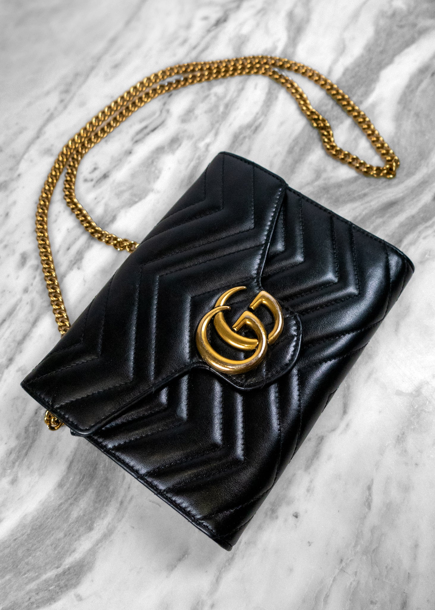 Gucci Calfskin Matelasse GG Marmont Chain Wallet