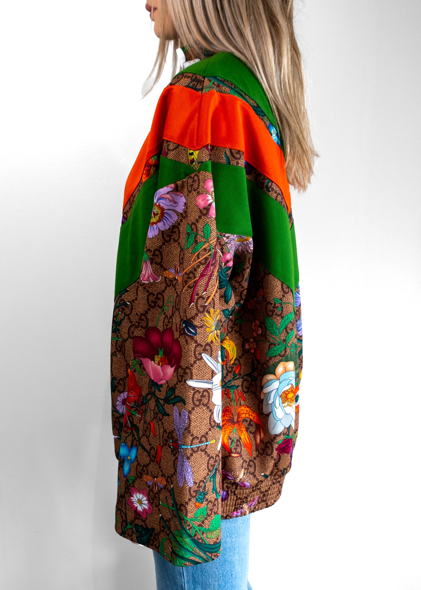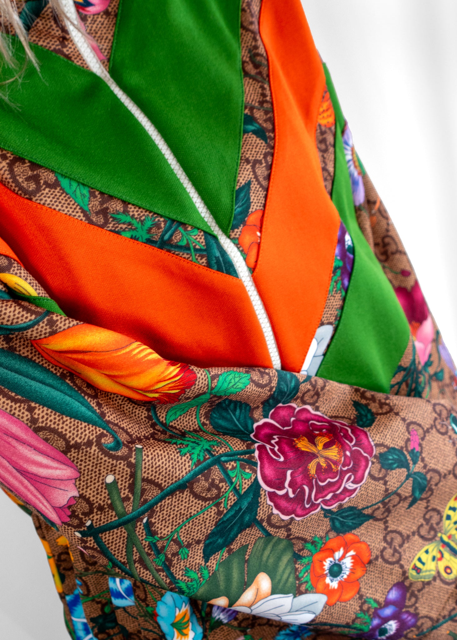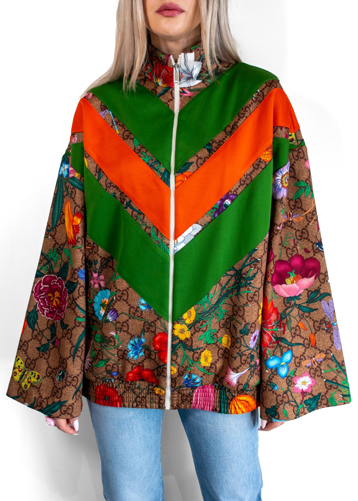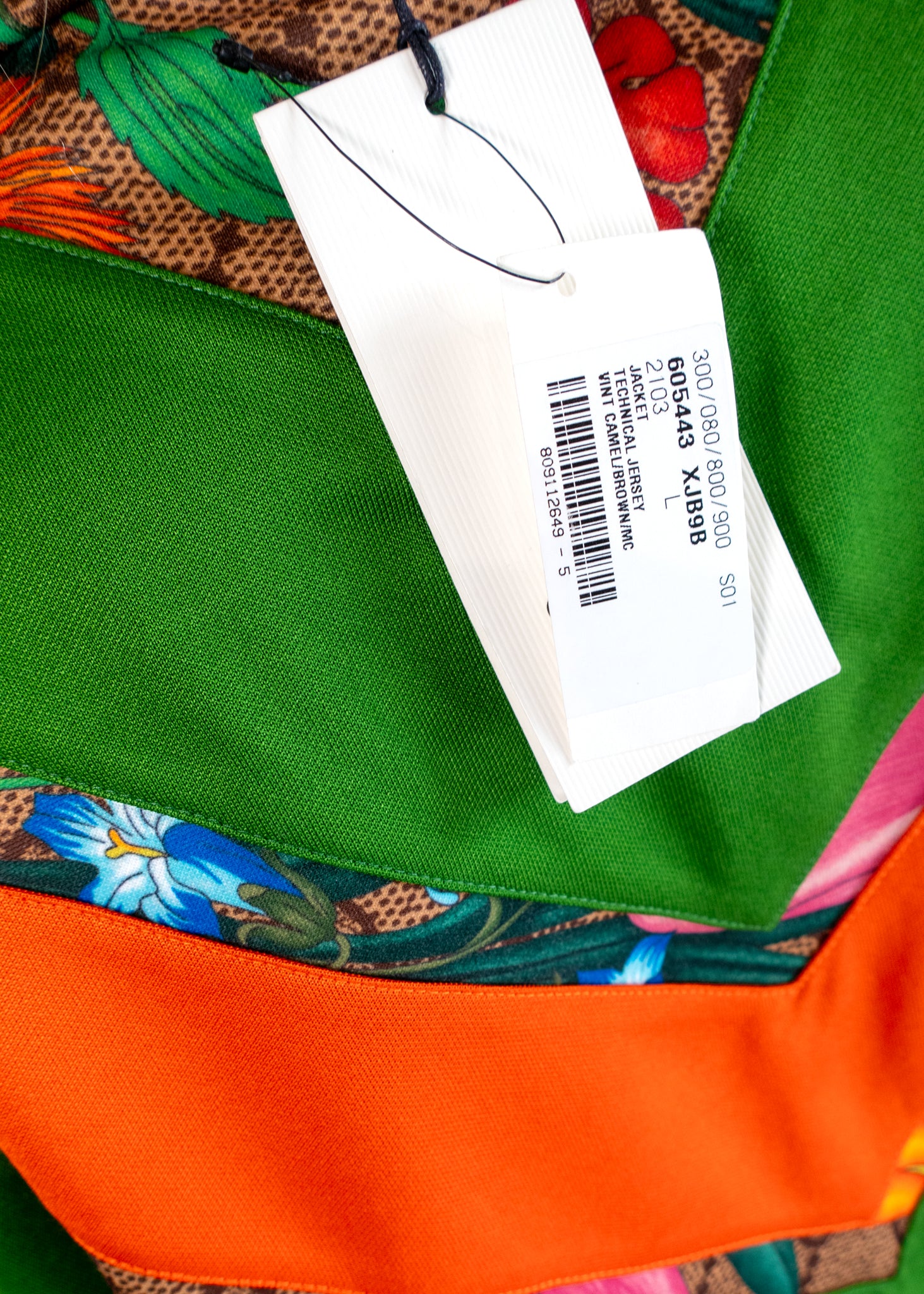 Gucci Green GG Supreme Floral Print Knit Zipper Track Jacket