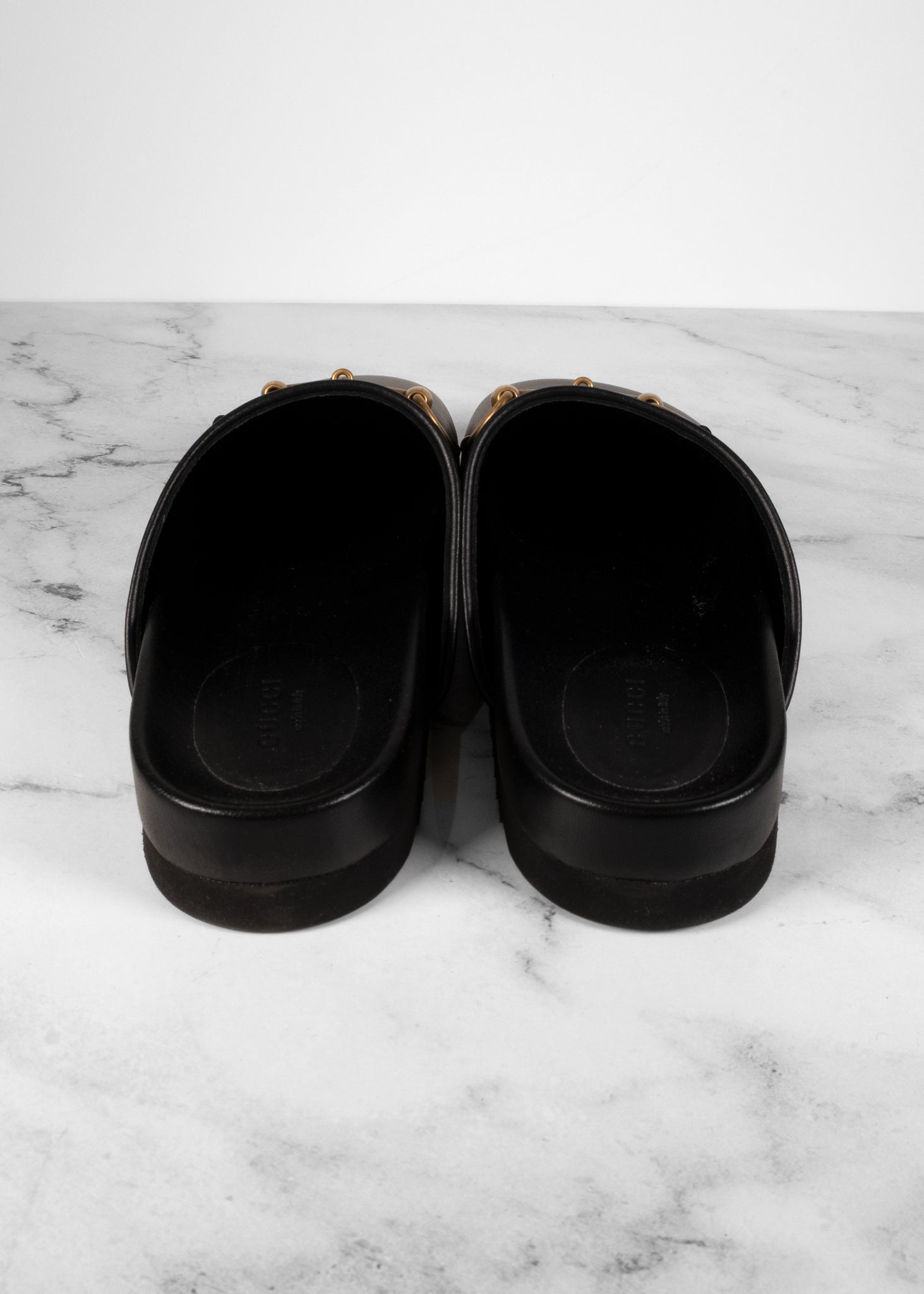Crafted with signature Gucci leather, these Horsebit Accent Mules combine classic craftsmanship with modern sophistication. The iconic horsebit detail adds a refined touch, reflecting the brand’s heritage. Designed for both comfort and style, they effortlessly elevate any wardrobe with timeless luxury and expert detailing.