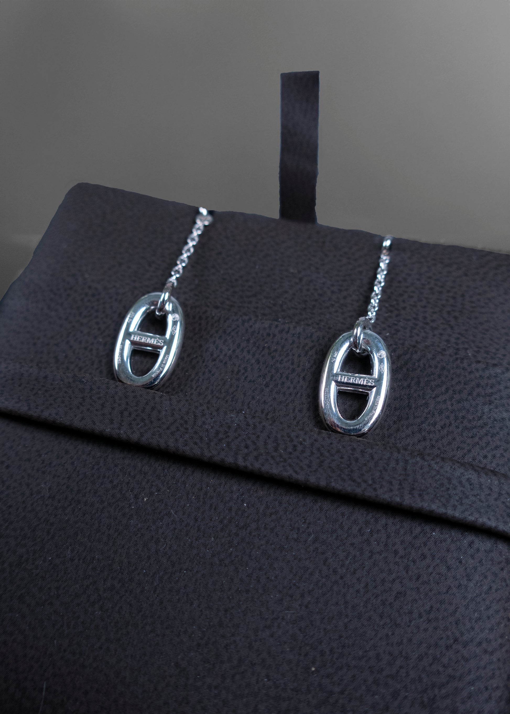 Elevate your style with the Hermès Chaîne d'Ancre silver earrings. Crafted from high-quality sterling silver, these elegant earrings feature a distinctive anchor chain link design, embodying the timeless sophistication Hermès is renowned for. Perfect for adding a touch of luxury to any outfit, they are a subtle yet striking statement piece.