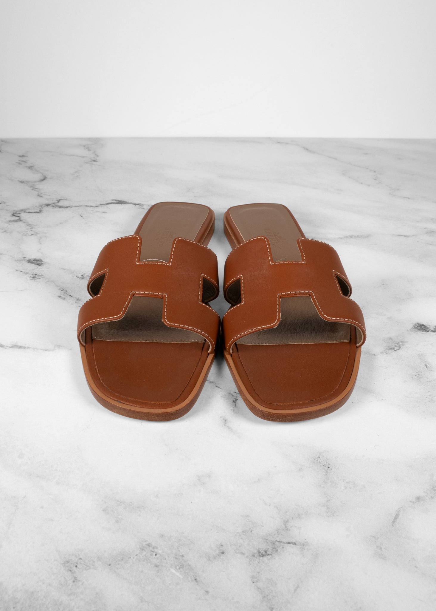 Elevate your footwear collection with the Hermes Flat Oran Gold Sandals, known for their timeless elegance and refined craftsmanship. Featuring the iconic Hermes "H" cut-out design in a sophisticated gold finish, these sandals effortlessly blend luxury with everyday wearability. Their flat sole provides comfort for extended use, making them ideal for both casual and upscale occasions. Perfect for those who appreciate understated opulence and quality materials, these sandals offer a versatile style statement that complements a broad range of outfits.