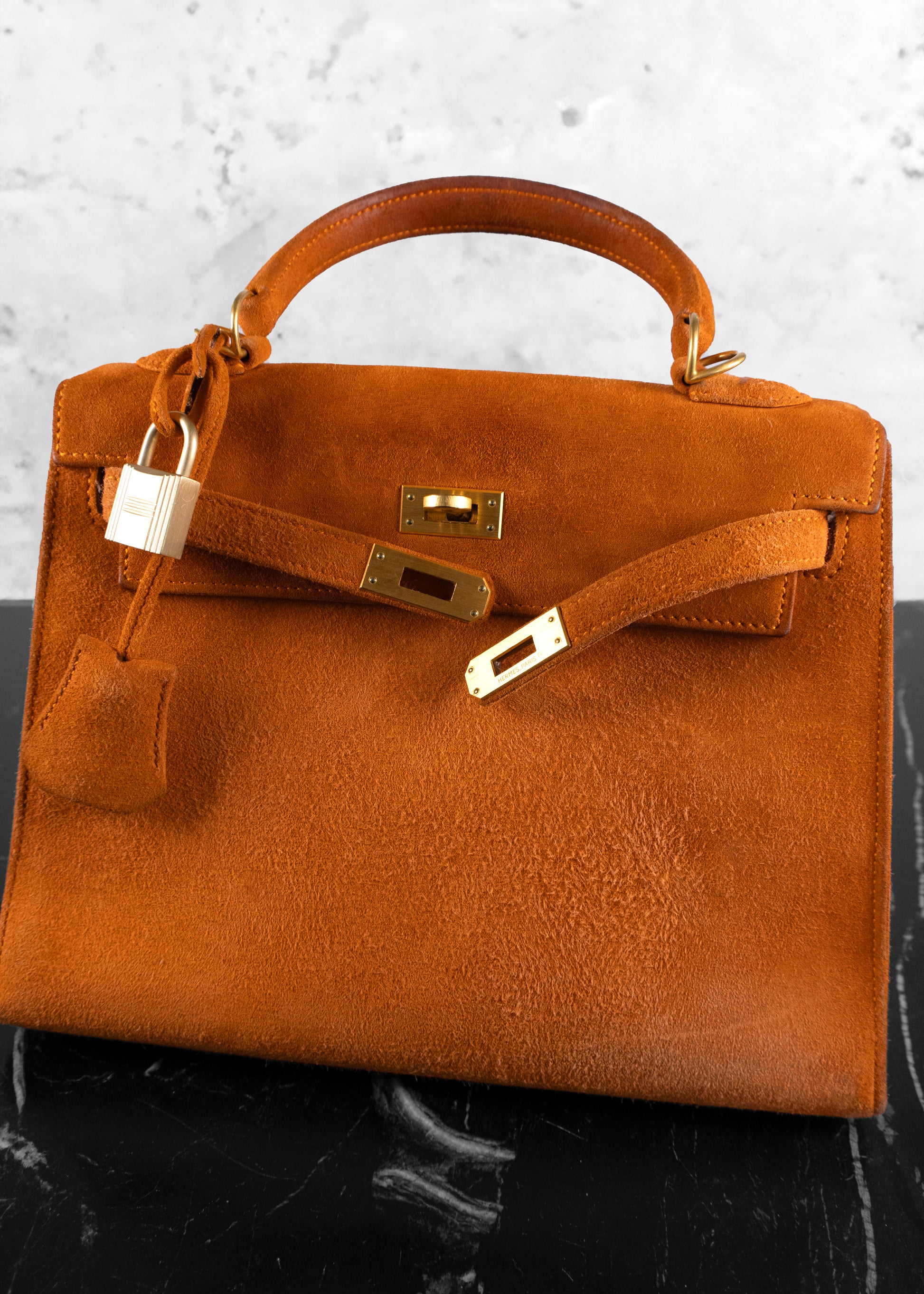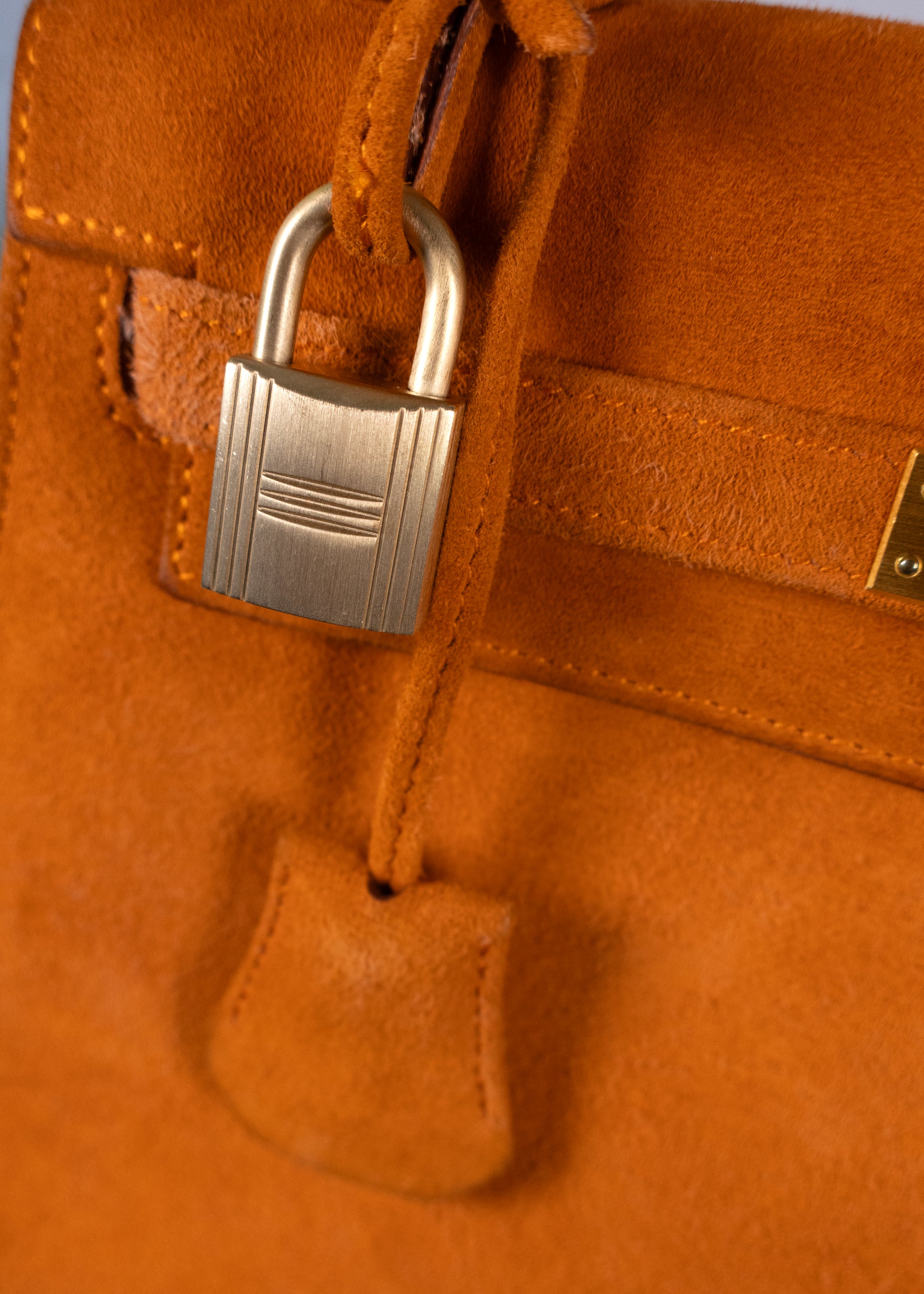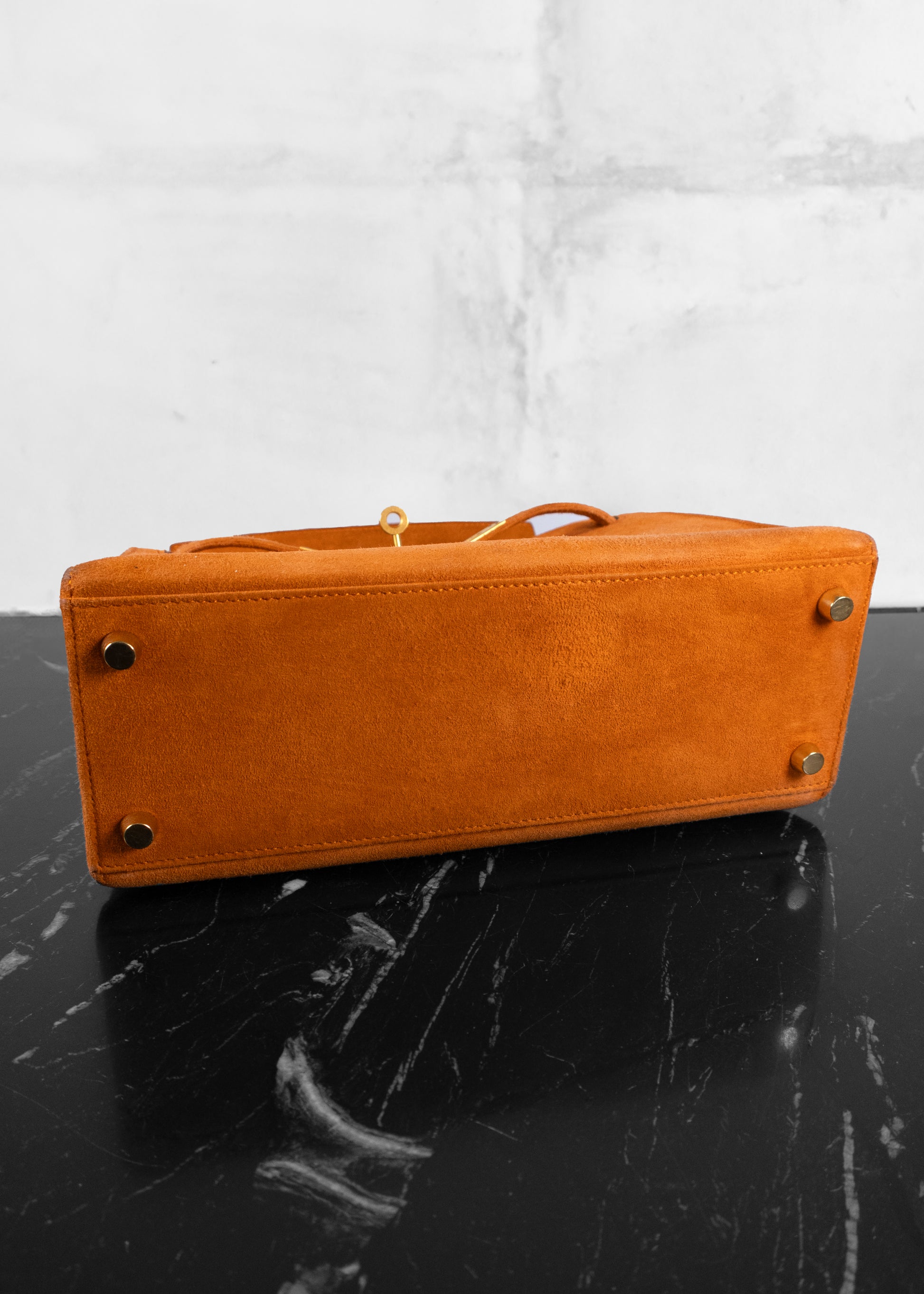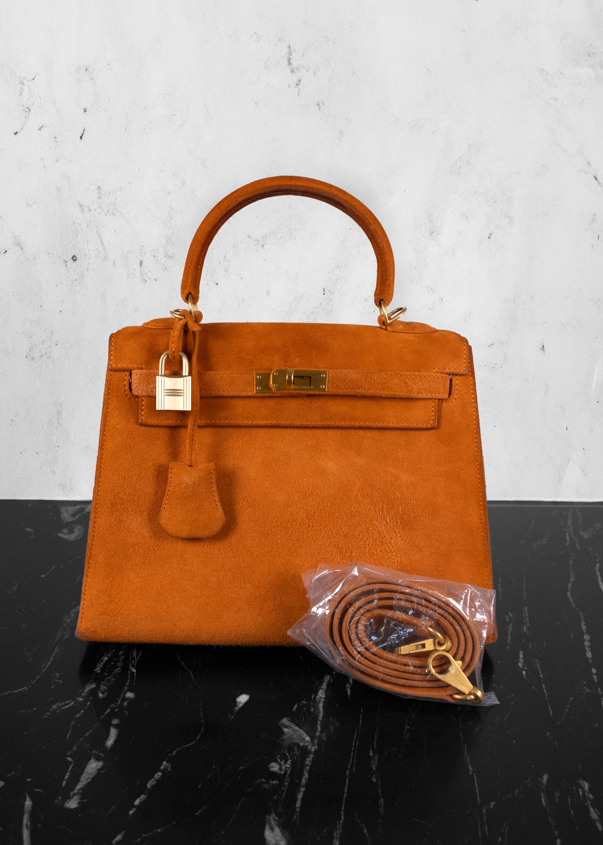 The Hermès Kelly 25 in vibrant orange suede is a luxurious, iconic handbag that exudes timeless elegance. Crafted from soft, premium suede, this bag features the signature Kelly top handle, sleek palladium hardware, and a classic turn-lock closure. Its compact 25 cm size is perfect for a statement look, combining sophistication with a bold pop of color. An ideal choice for collectors and fashion enthusiasts alike.
