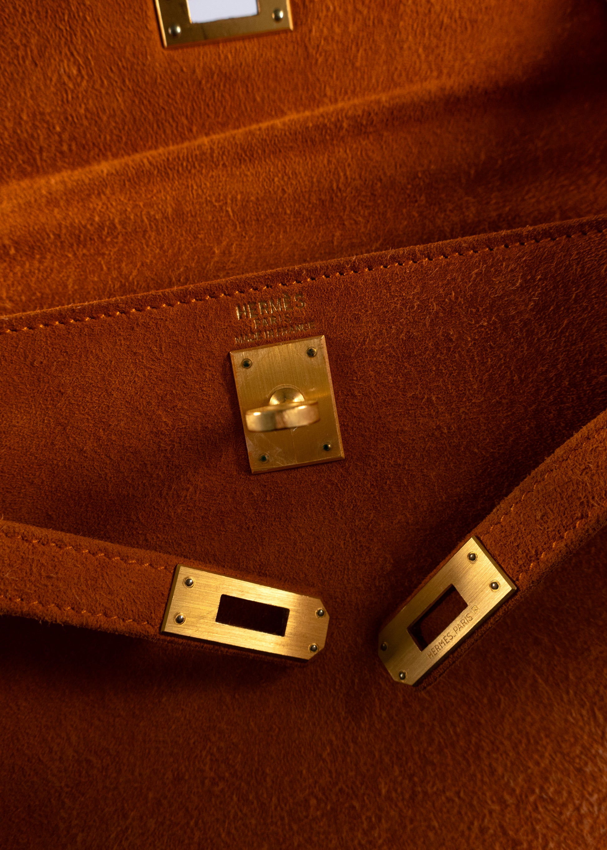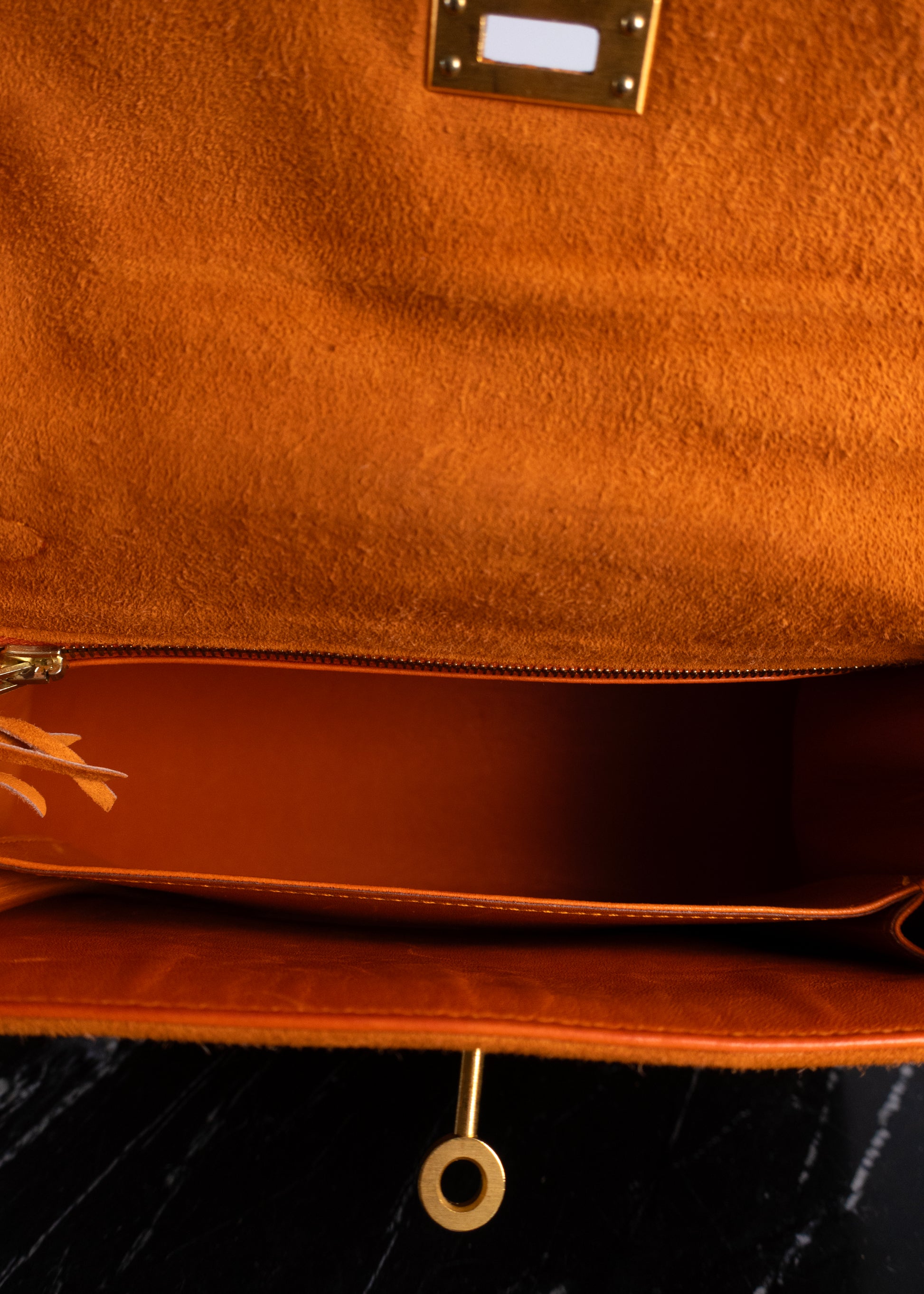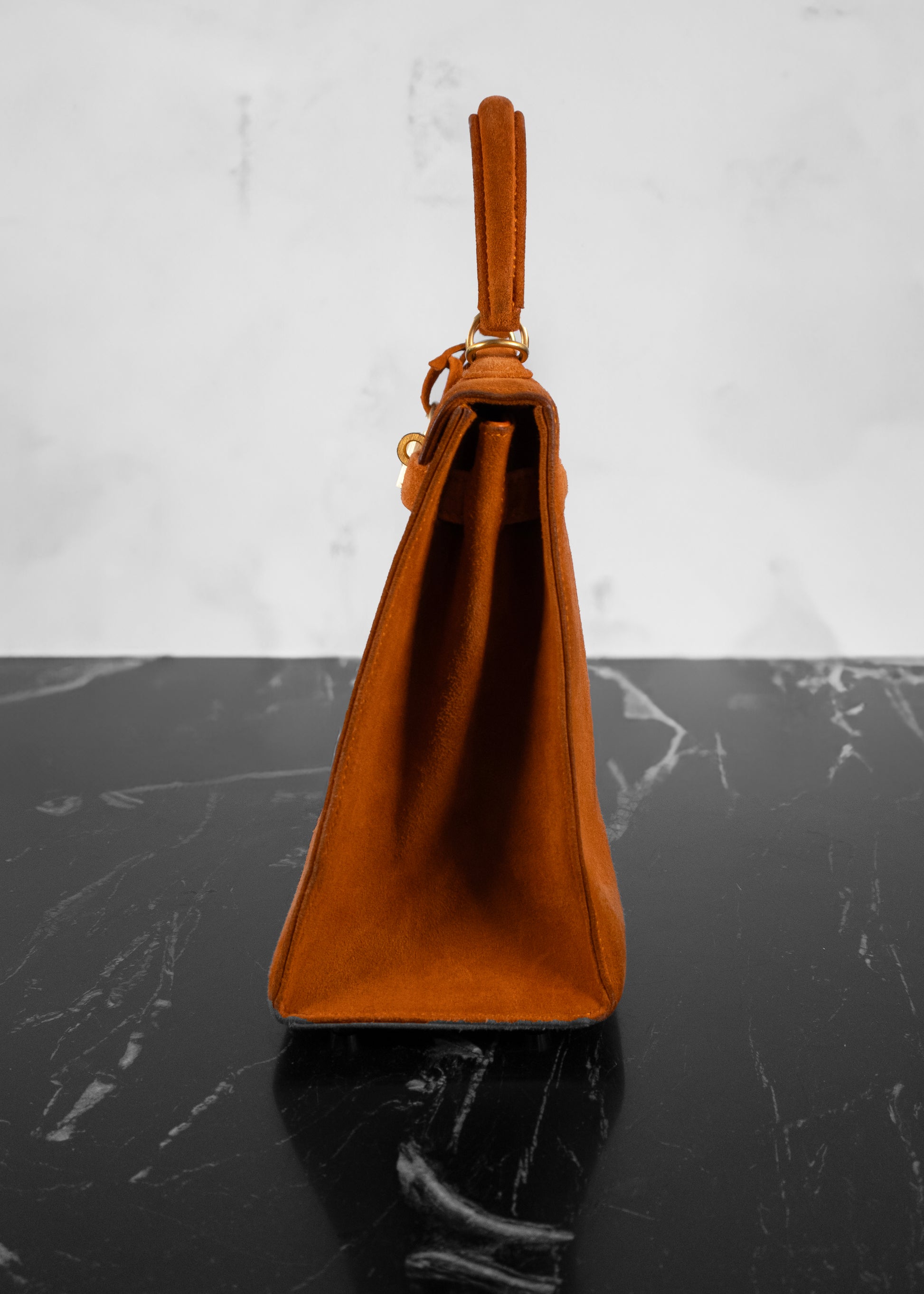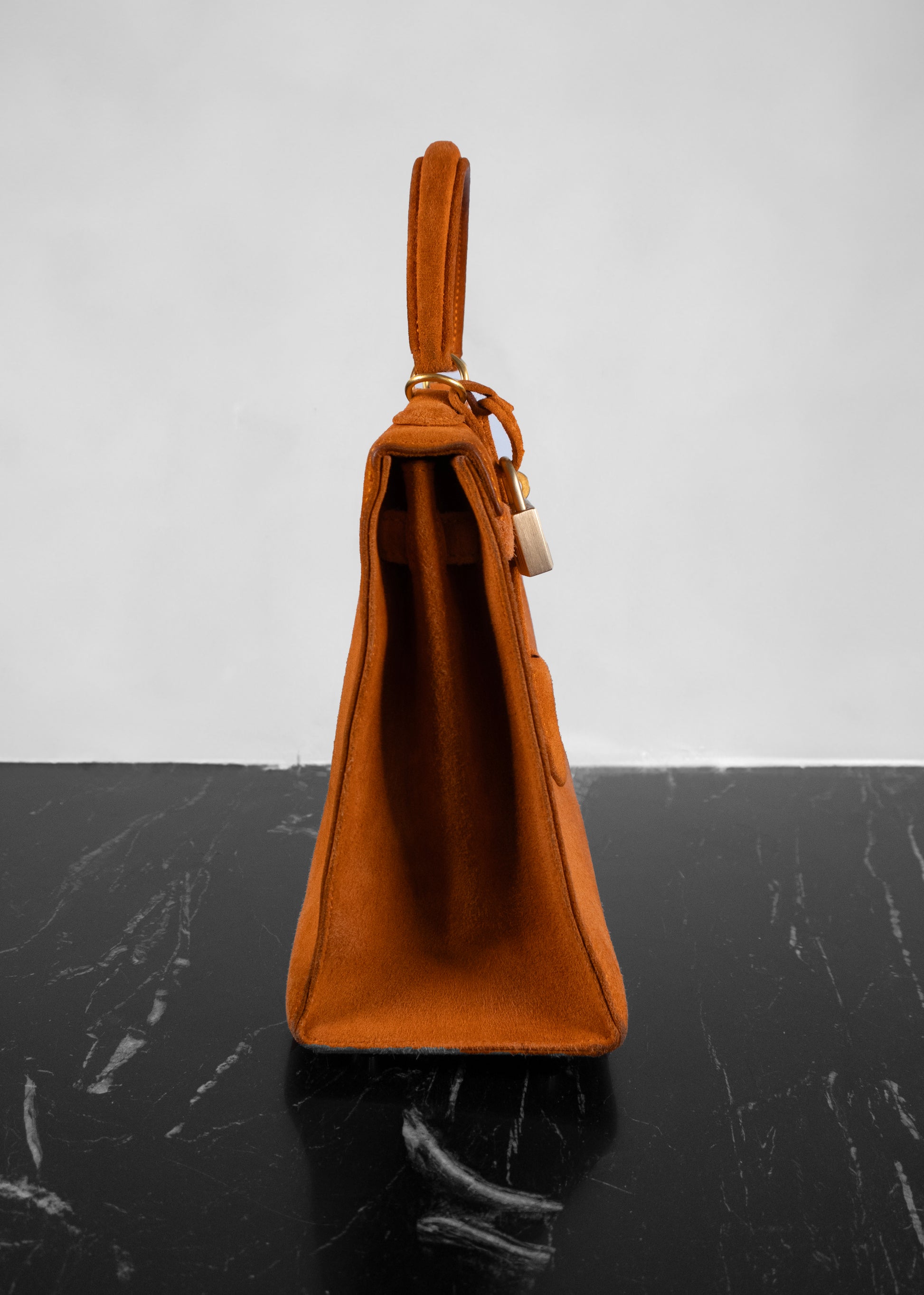 The Hermès Kelly 25 in vibrant orange suede is a luxurious, iconic handbag that exudes timeless elegance. Crafted from soft, premium suede, this bag features the signature Kelly top handle, sleek palladium hardware, and a classic turn-lock closure. Its compact 25 cm size is perfect for a statement look, combining sophistication with a bold pop of color. An ideal choice for collectors and fashion enthusiasts alike.