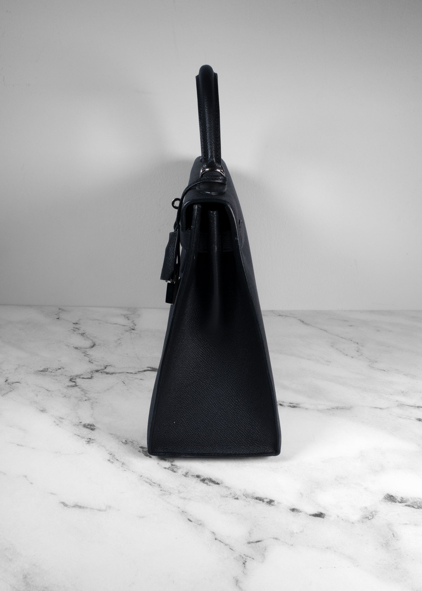 Hermès Kelly Sellier 32 Black Epsom Palladium Hardware