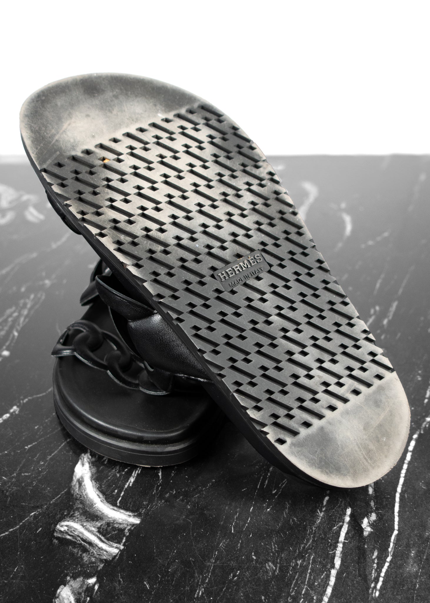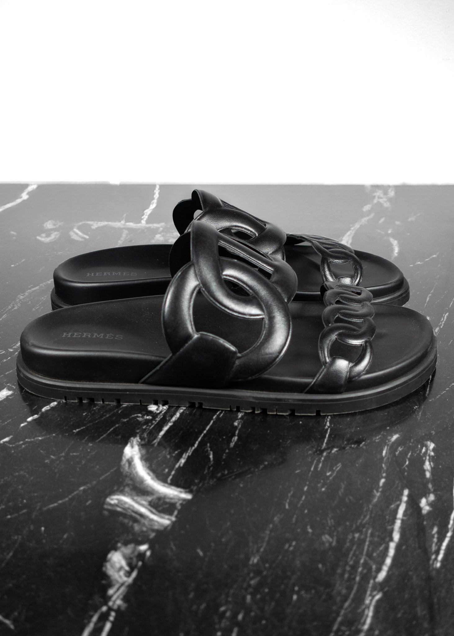 The Hermès Nappa Extra Sandals are the epitome of luxurious footwear, blending exquisite craftsmanship with timeless elegance. Made from the finest nappa leather, these sandals offer unparalleled softness and durability. Their minimalist design is highlighted by clean lines and subtle stitching, making them a versatile addition to any wardrobe. With a focus on comfort and style, the Hermès Nappa Extra Sandals feature a cushioned insole and a flexible sole, ensuring all-day wearability. Perfect for both casual and sophisticated ensembles, these sandals exemplify Hermès' commitment to quality and refinement.