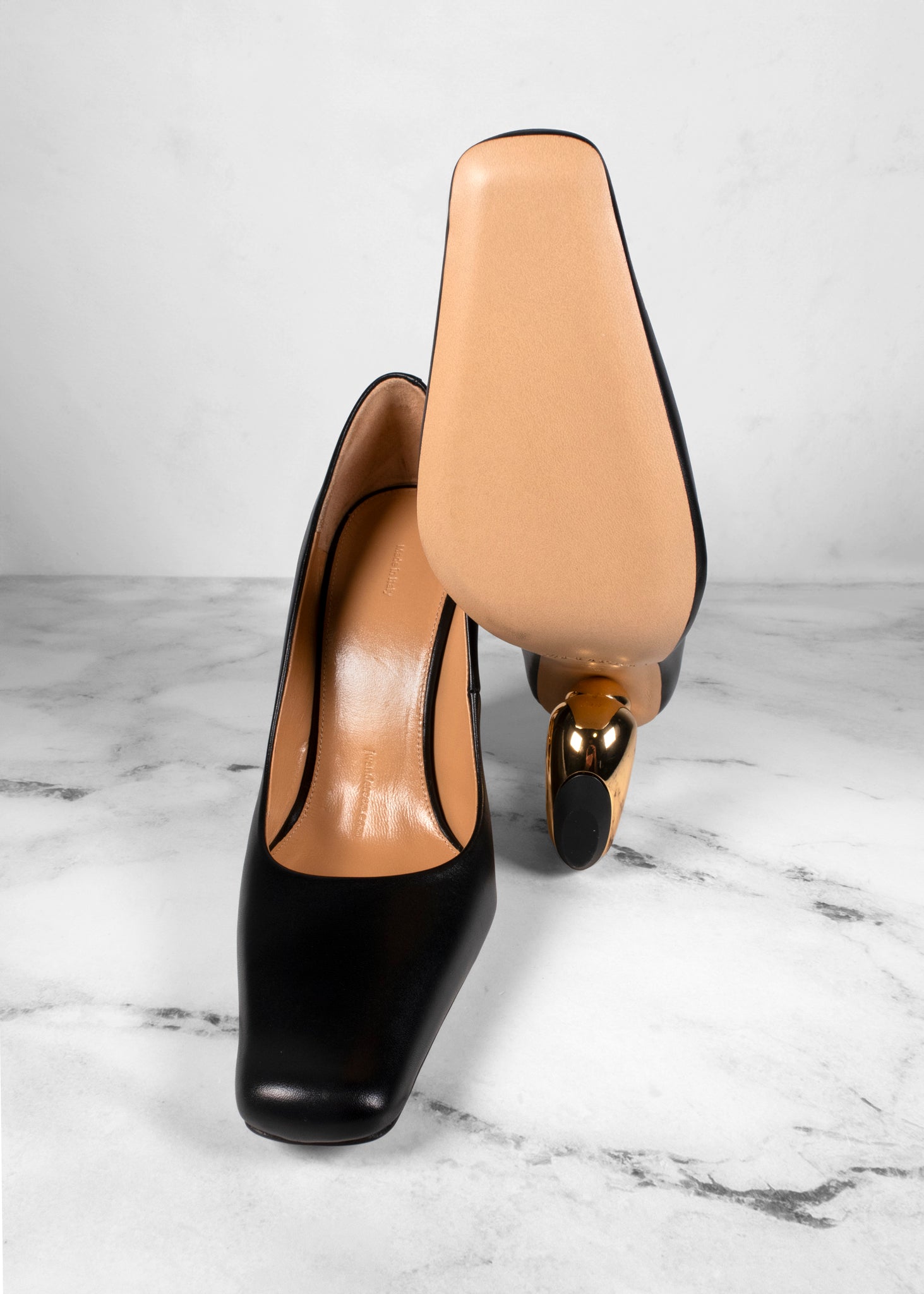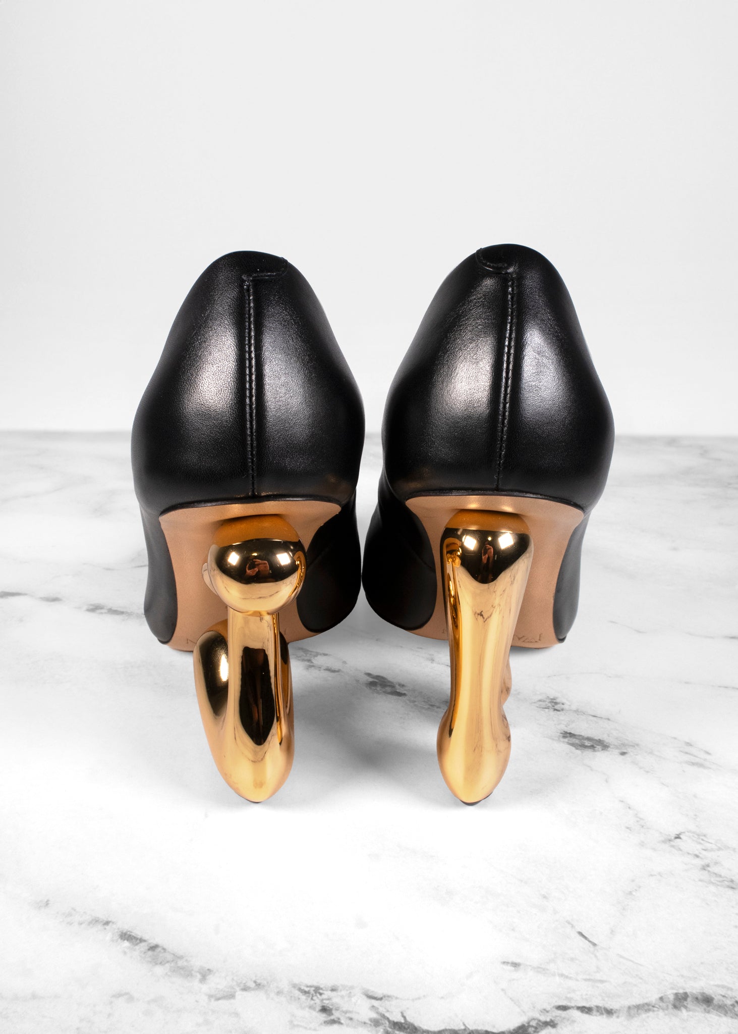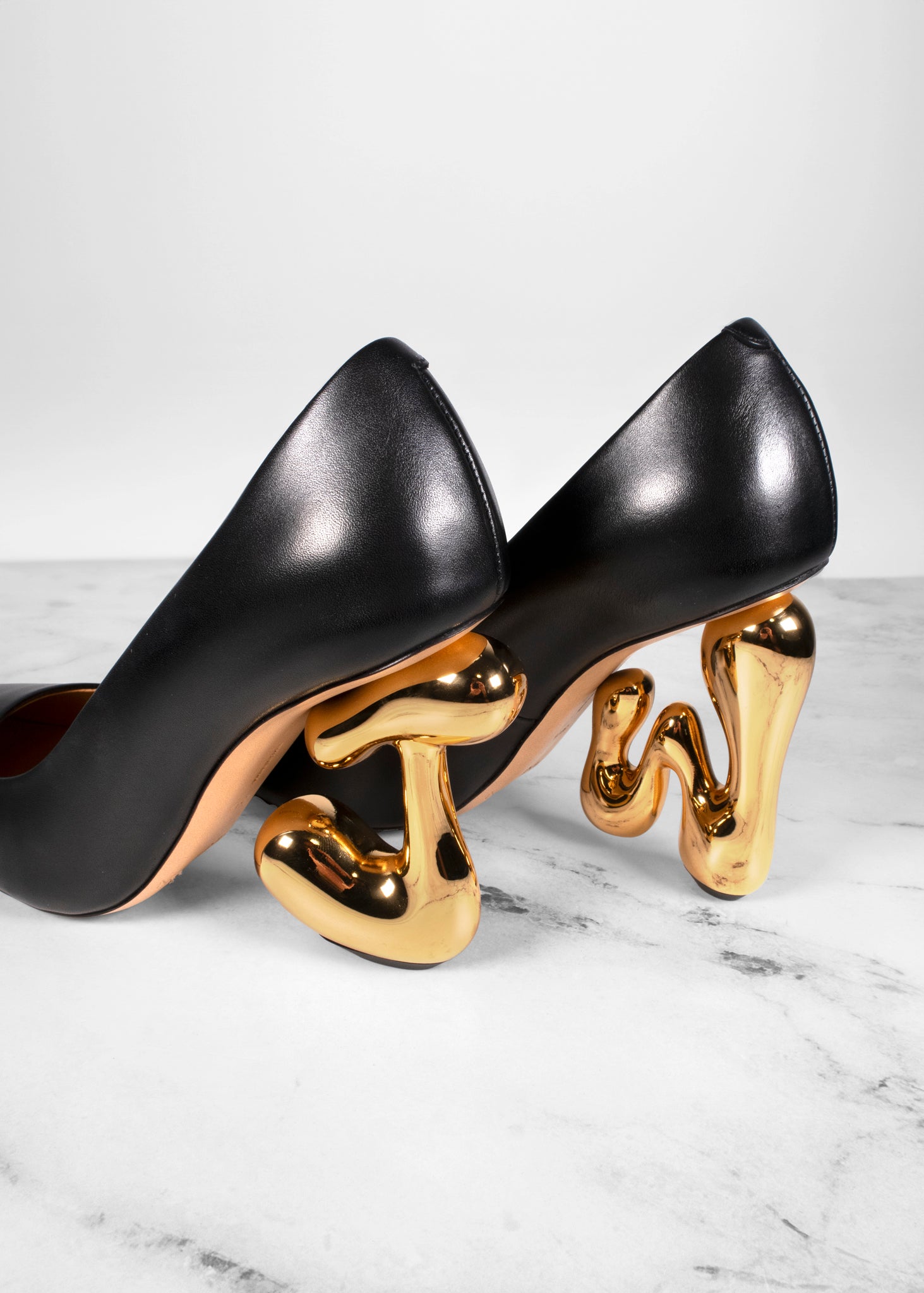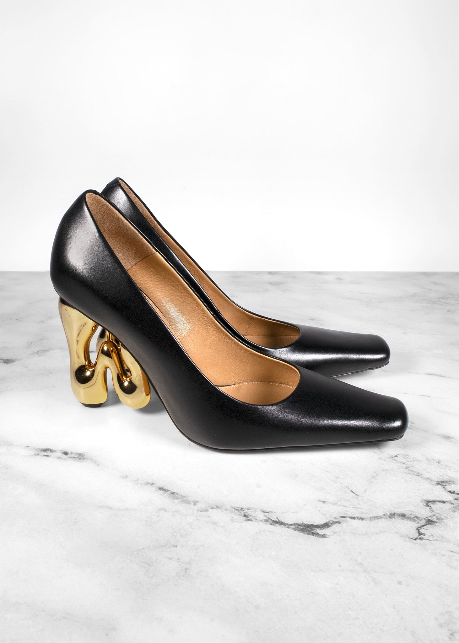 The JW Anderson Bubble Leather Pumps feature a unique and modern design with a distinctive bubble-shaped heel. Crafted from high-quality leather, these pumps combine elegance with a touch of bold, contemporary style. The sleek silhouette and comfortable fit make them a versatile addition to any wardrobe, perfect for adding a statement touch to both casual and formal looks. The signature JW Anderson logo adds an extra element of luxury to these standout pumps.