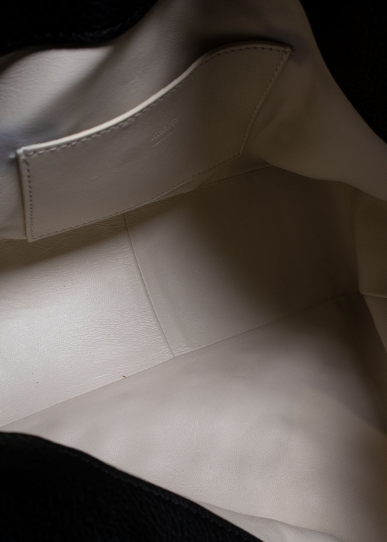 Elevate your everyday carry with this Khaite shoulder bag, crafted from supple black leather and punctuated with striking silver studs for understated edge. The structured silhouette balances sophistication with modern attitude, while the adjustable shoulder strap ensures versatile styling from day to evening. A refined investment piece that transcends seasonal trends, this bag pairs seamlessly with both minimalist and statement-driven wardrobes. The premium leather develops a distinguished patina over time, deepening its character with wear.