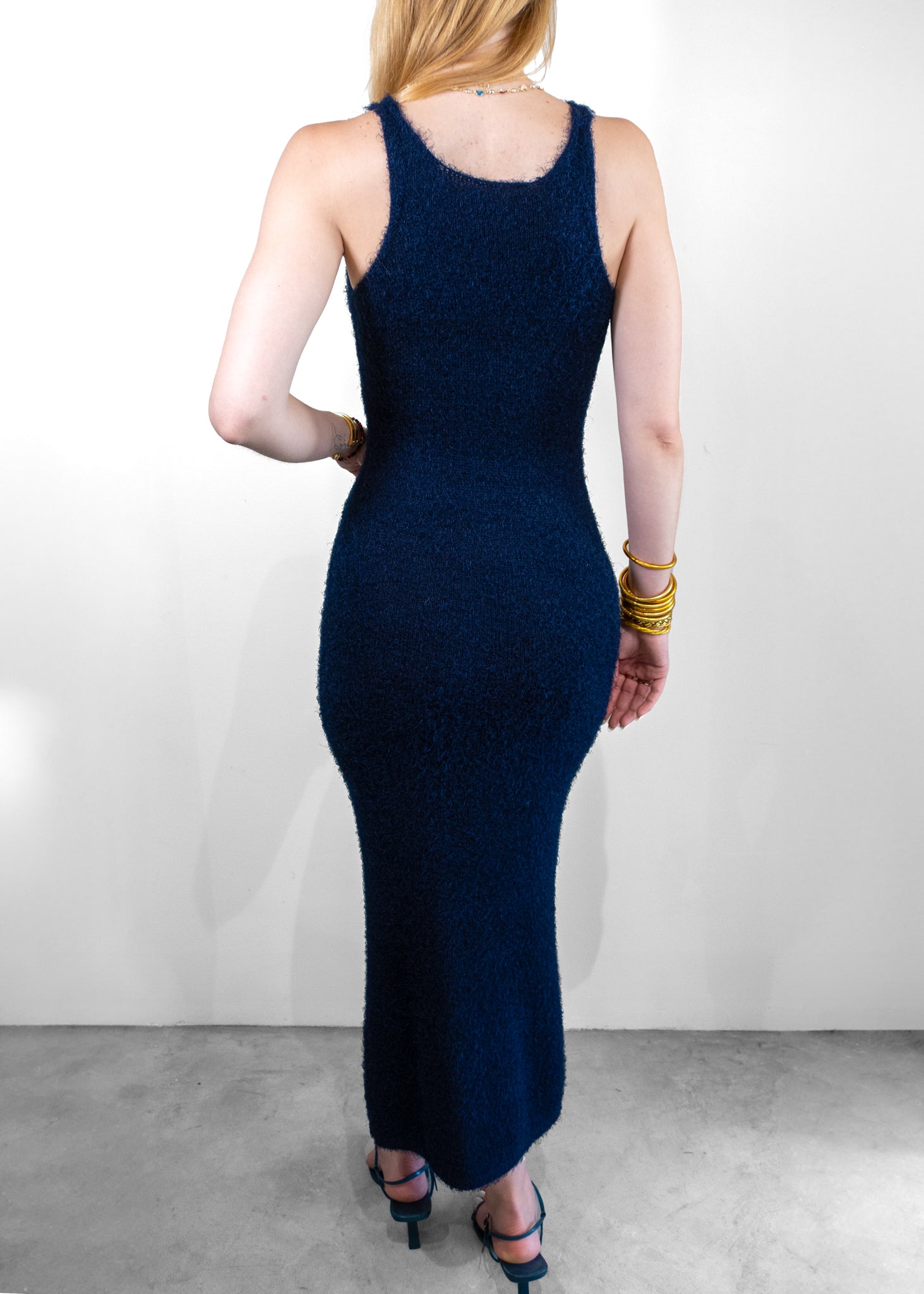 The Khaite Navy Jaime Dress is a sophisticated and timeless piece, featuring a flattering silhouette with a touch of modern elegance. Crafted from high-quality materials, this dress boasts a rich navy hue, a sleek, fitted bodice, and a gracefully flared skirt. Perfect for any occasion, the Jaime Dress seamlessly combines classic style with contemporary charm, making it a versatile addition to any wardrobe.