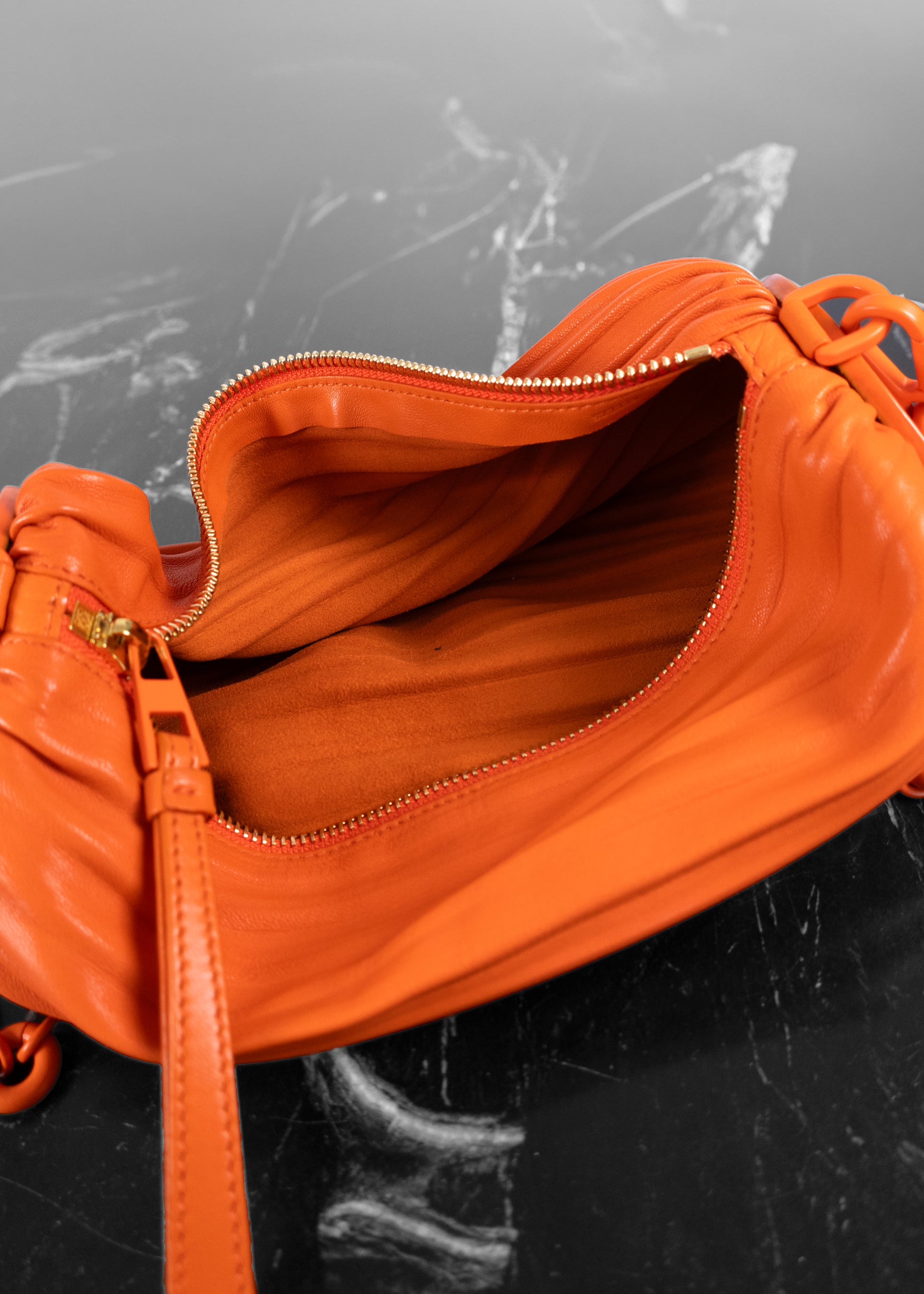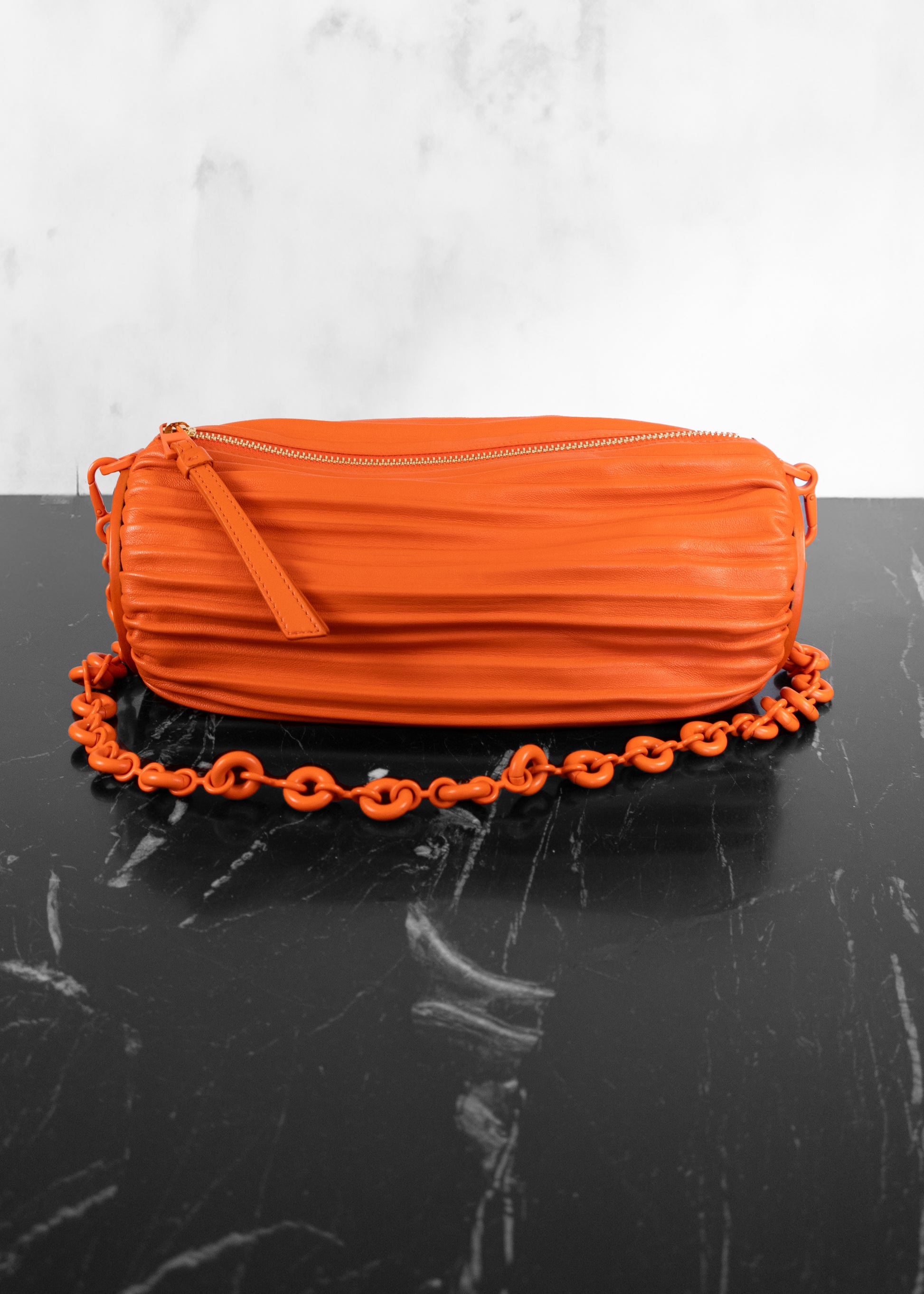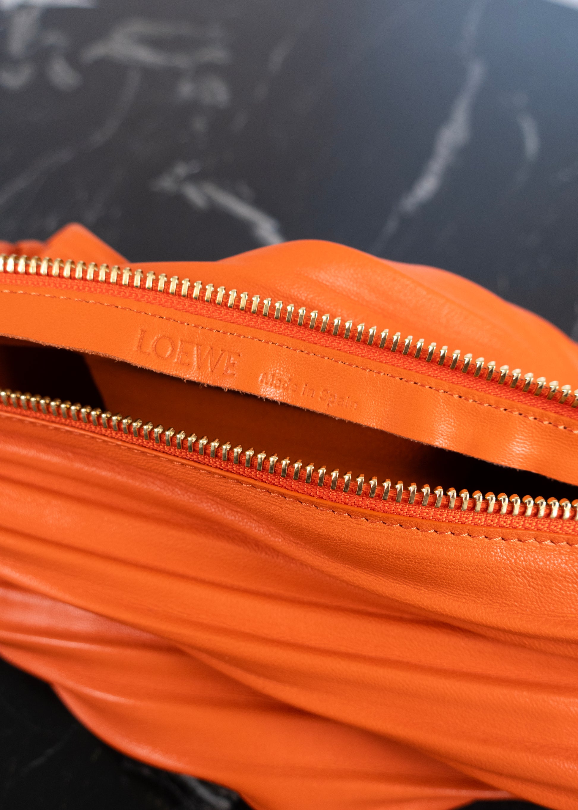 The Loewe Pleated Bracelet Pouch is a chic and versatile accessory, blending sophistication with practicality. Crafted from luxurious leather, this pouch features a distinctive pleated design that adds texture and visual interest. Its elegant bracelet strap allows for easy carrying, while the spacious interior ensures you can store essentials in style. Ideal for both day and evening use, it’s a statement piece that enhances any outfit.