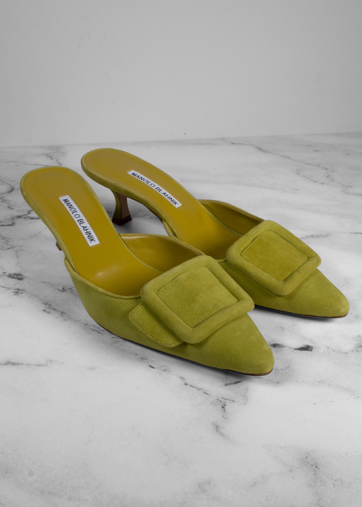 Manolo Blahnik Green Maysale 50 Mules