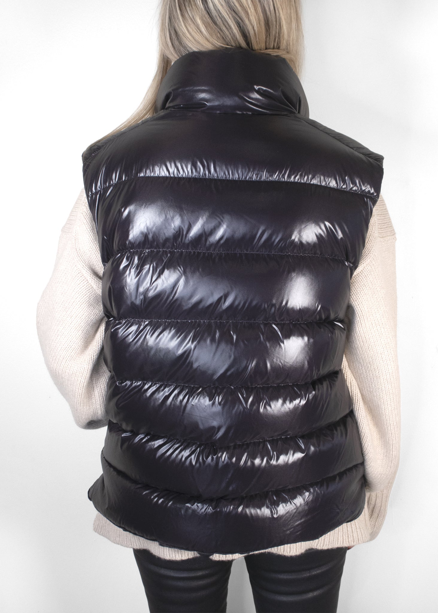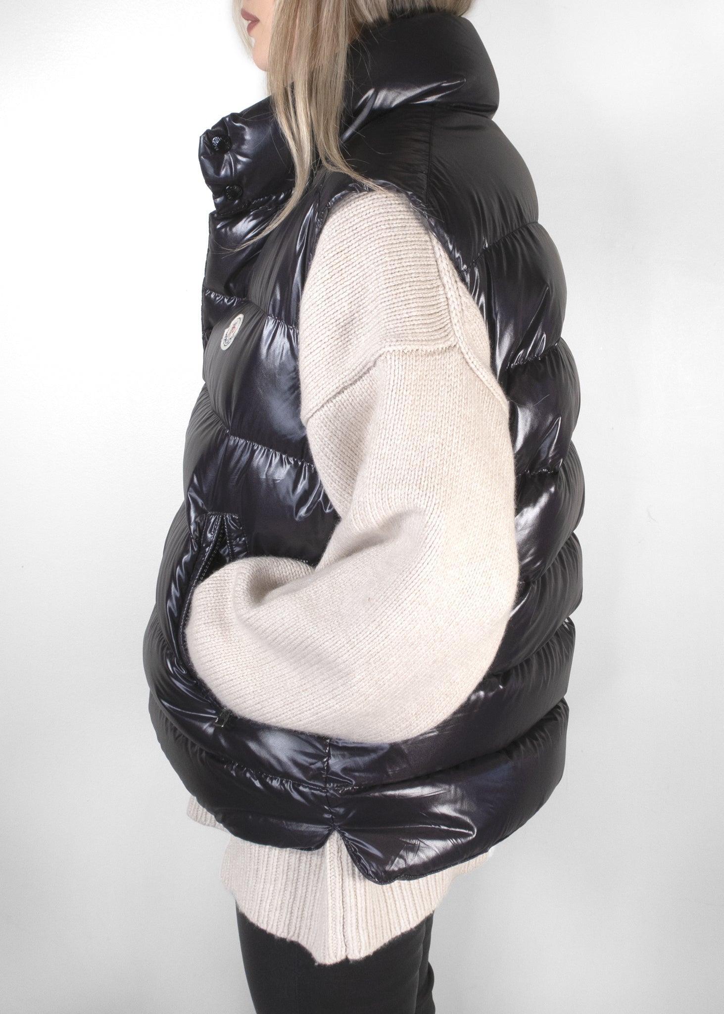 The Moncler Ghany Down Vest is a stylish, functional piece made from water-resistant fabric, featuring premium down insulation for warmth. Its sleek design includes a high collar, zip closure, and signature Moncler logo on the chest, making it a versatile addition to both casual and outdoor outfits. Ideal for layering, it offers a blend of elegance and practicality, perfect for cooler weather.
