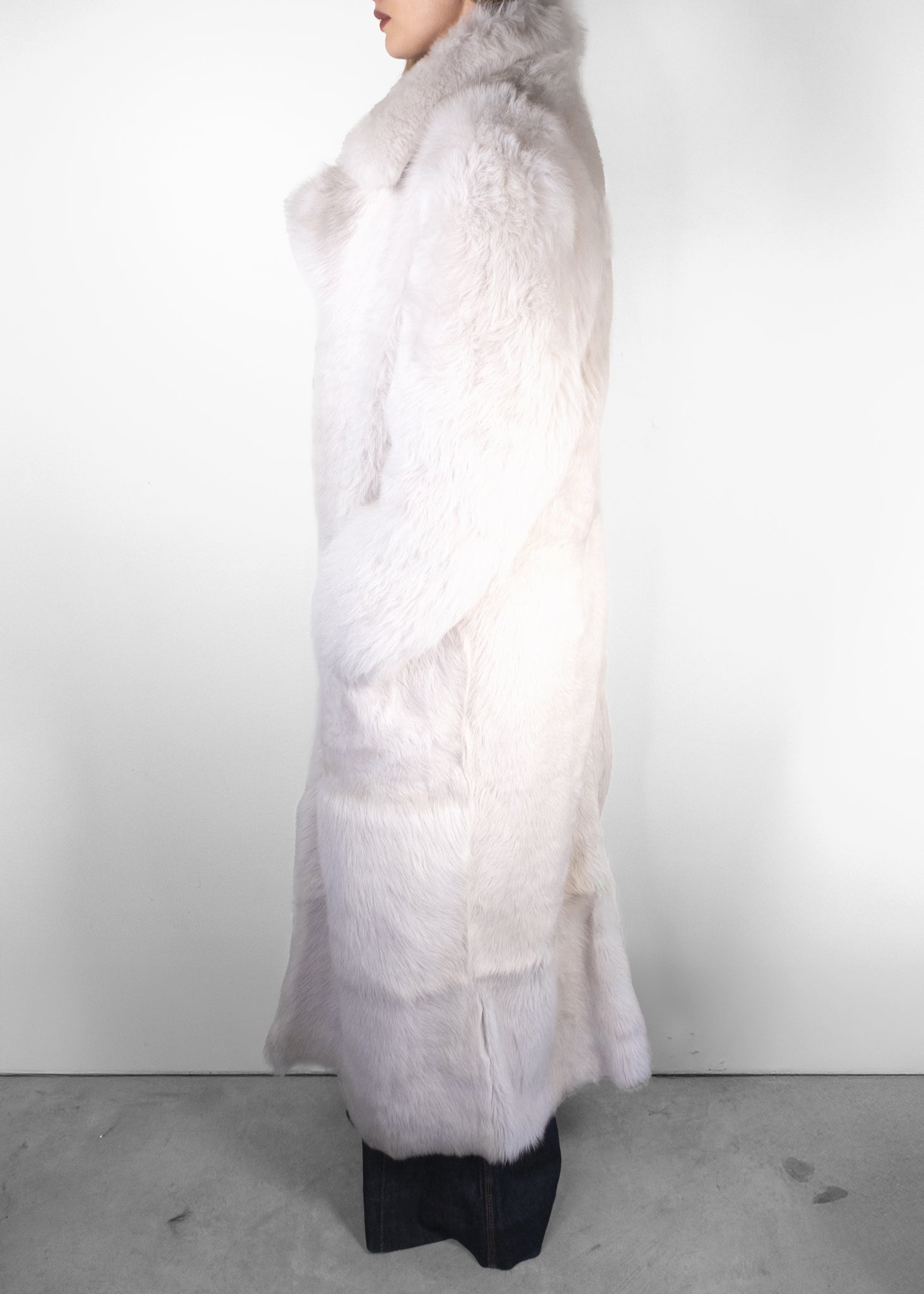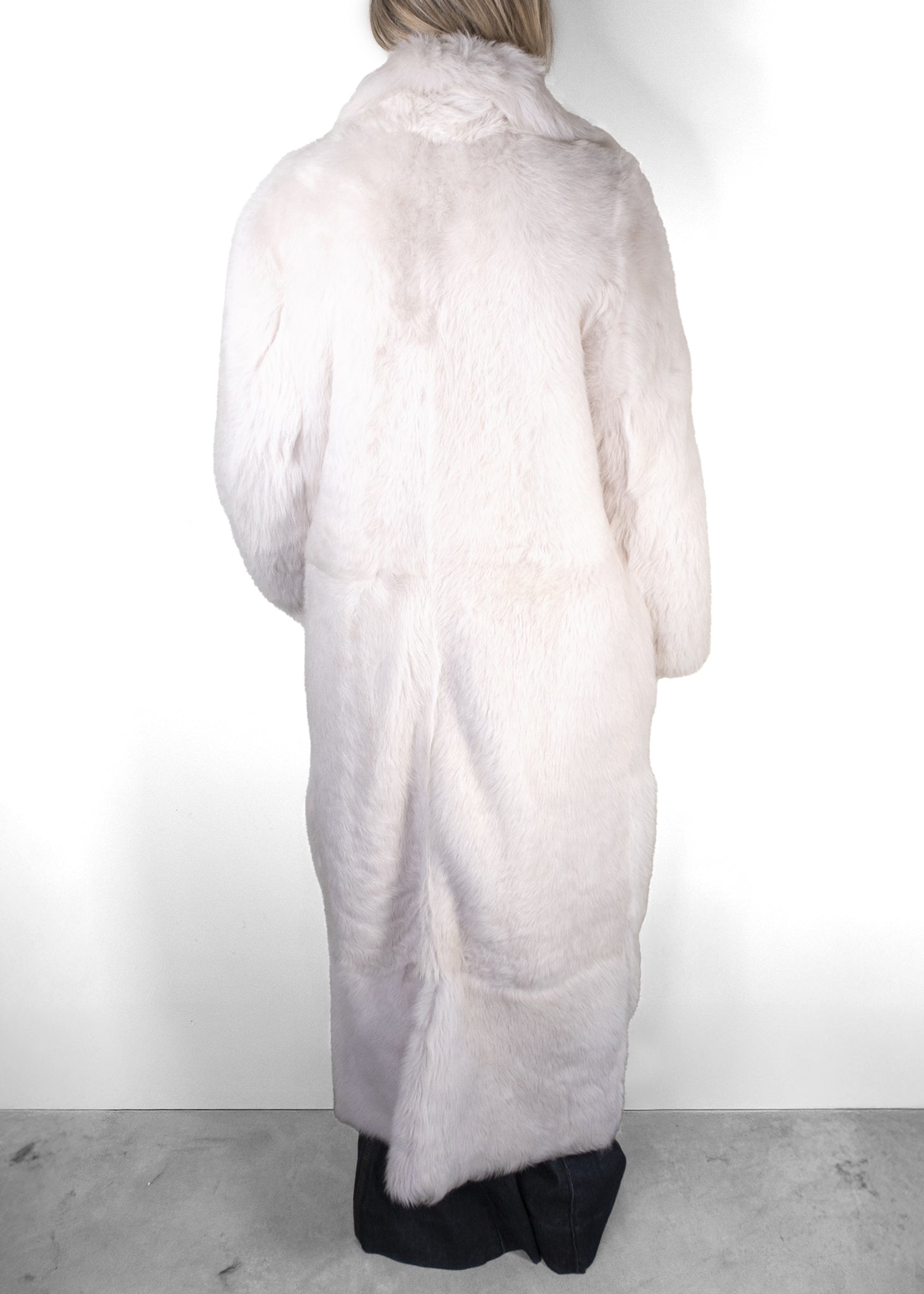 The Nour Hammour Evita Shearling Coat is a luxurious statement piece crafted from premium shearling. It features a tailored silhouette, soft leather accents, and a cozy interior for warmth. The coat is designed with a modern edge, offering both style and functionality, making it perfect for elevating any winter wardrobe.