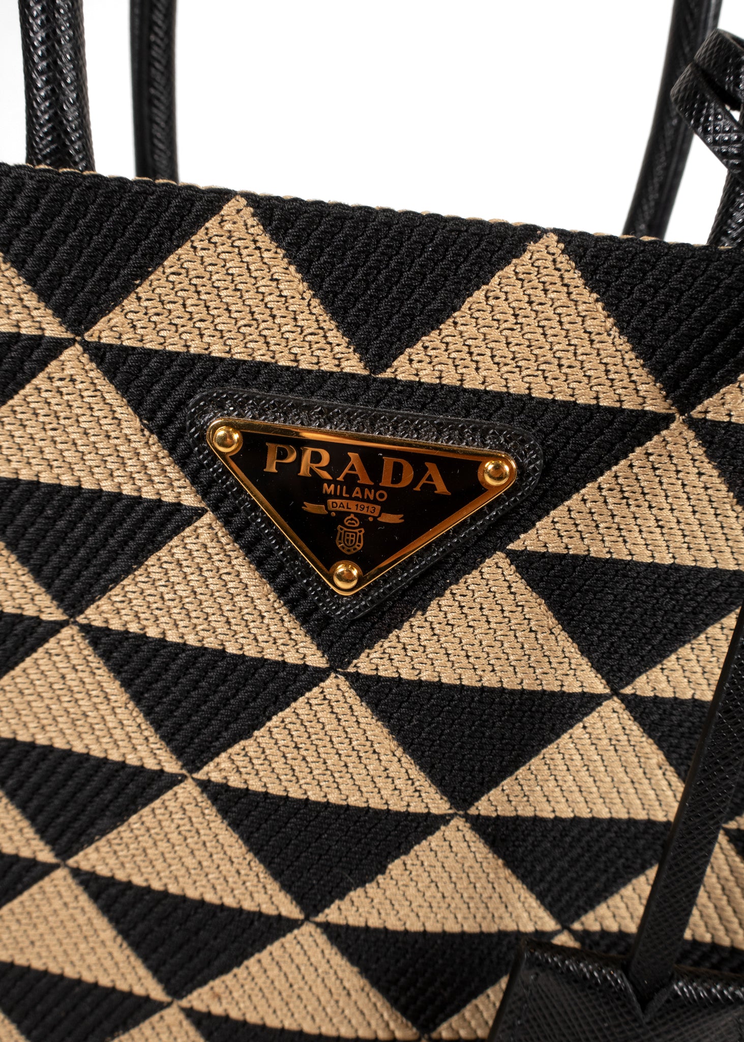 Prada Black And Tan Jacquard Saffiano Triangolo Symbole Mini Tote