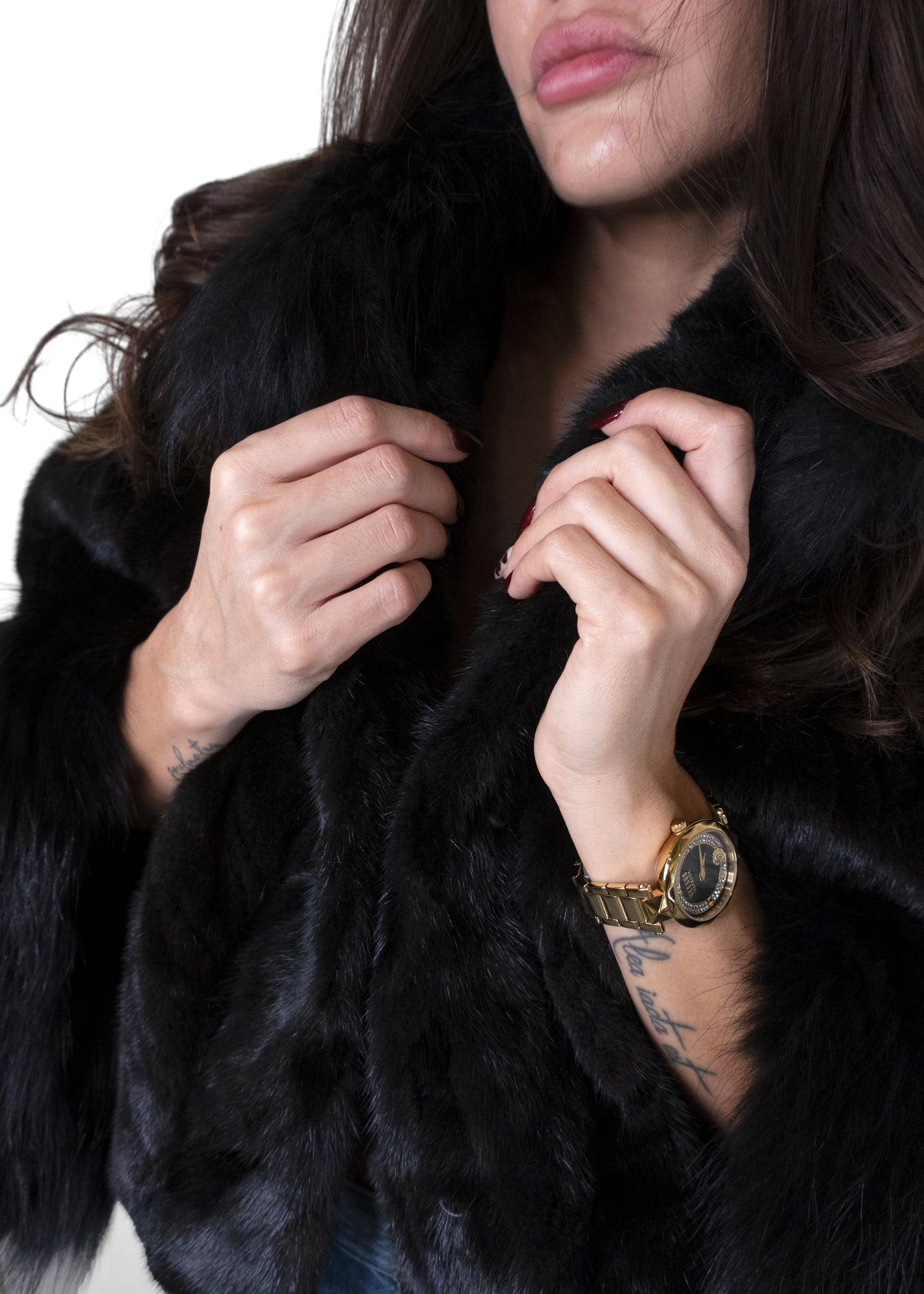 This vintage mink fur coat exudes timeless elegance, crafted from soft, luxurious mink fur with a natural sheen. It features a classic silhouette, often with a tailored fit, wide lapels, and hidden closures. Perfect for formal occasions, it offers warmth and a sophisticated touch to any outfit.