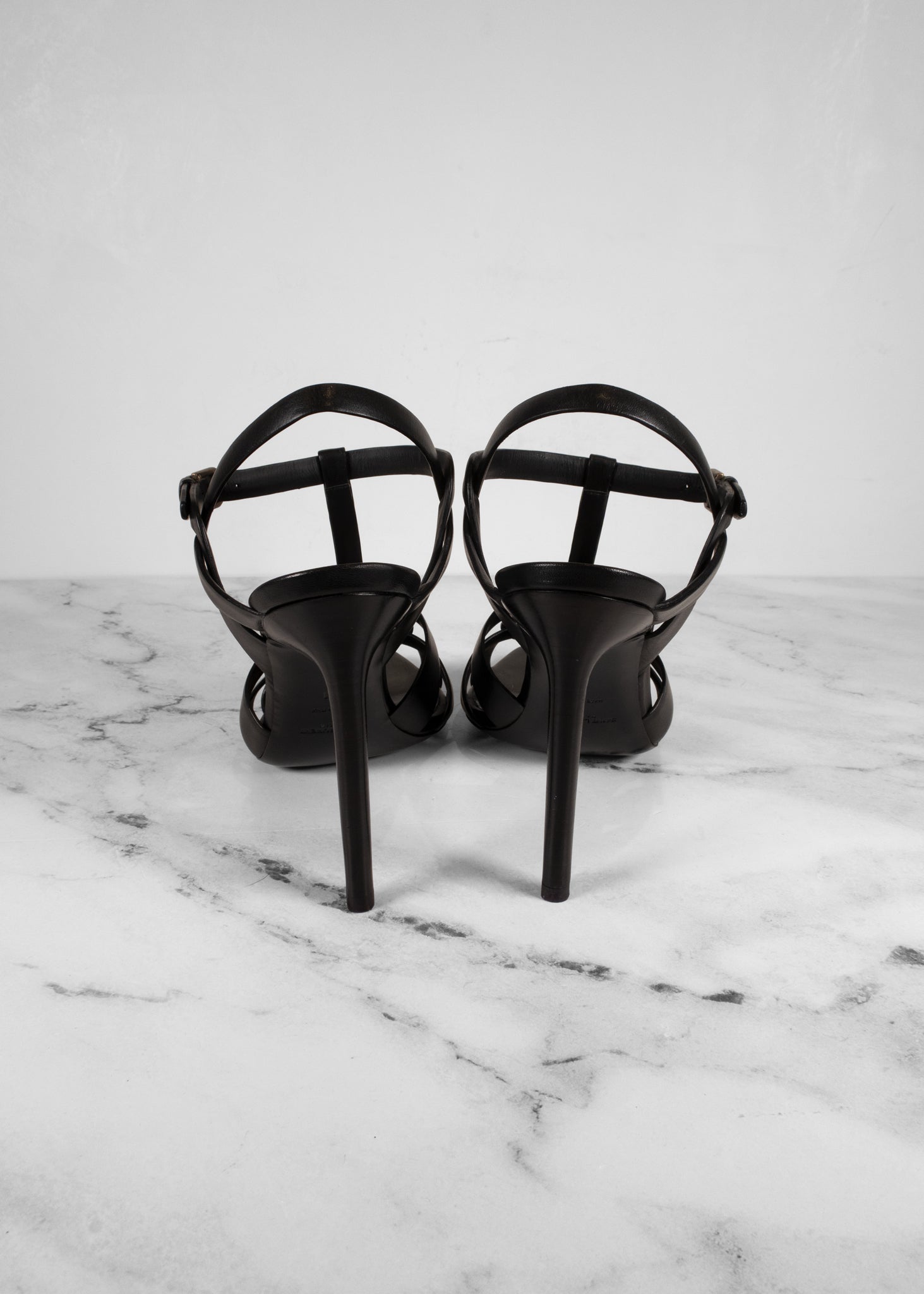 Saint Laurent YSL tribute Black Leather Strappy Heeled Sandals