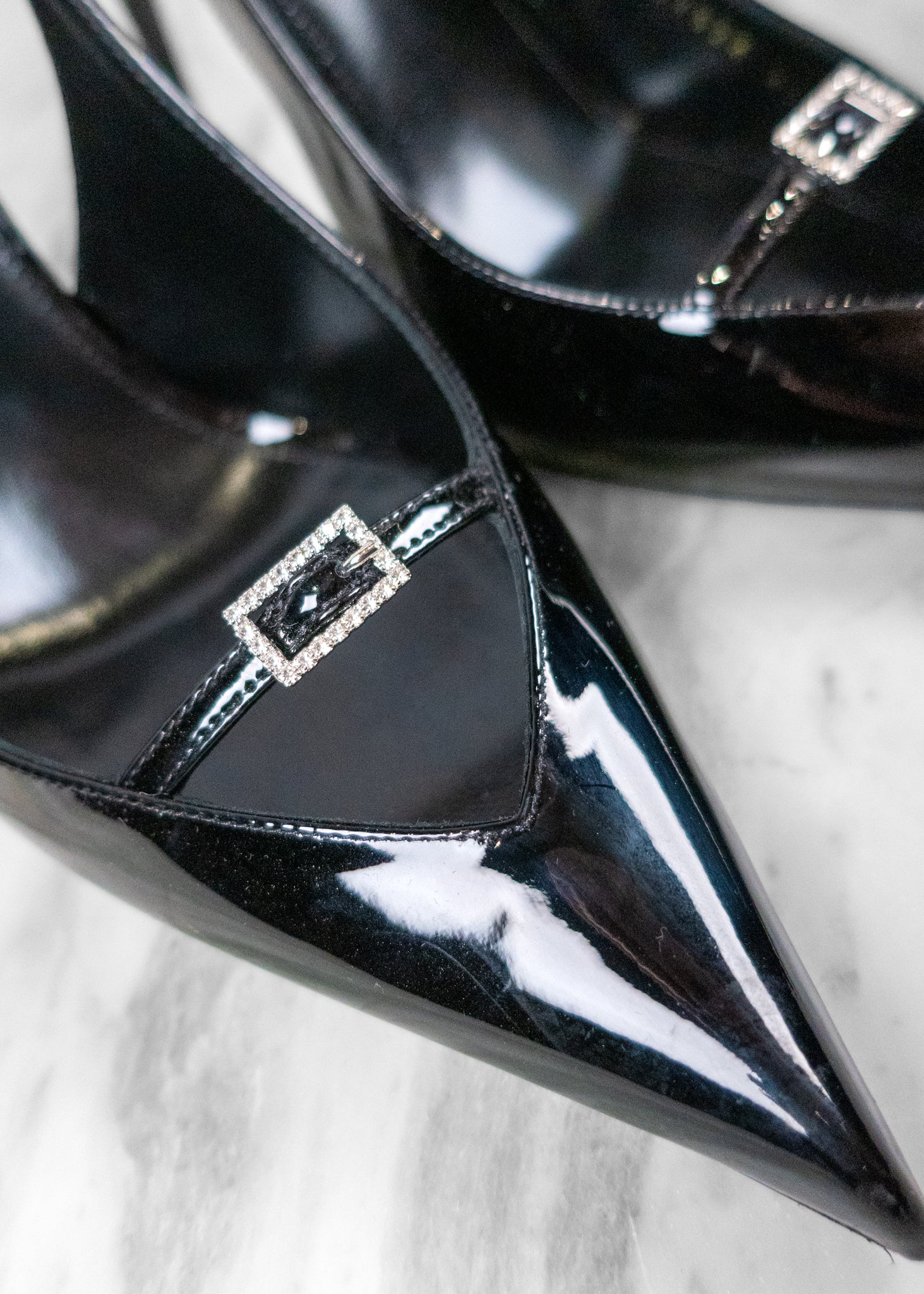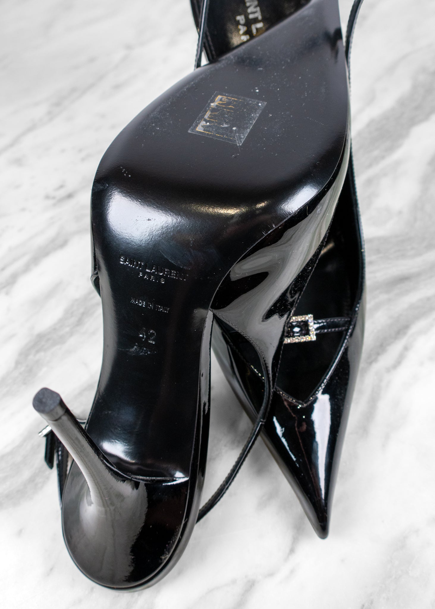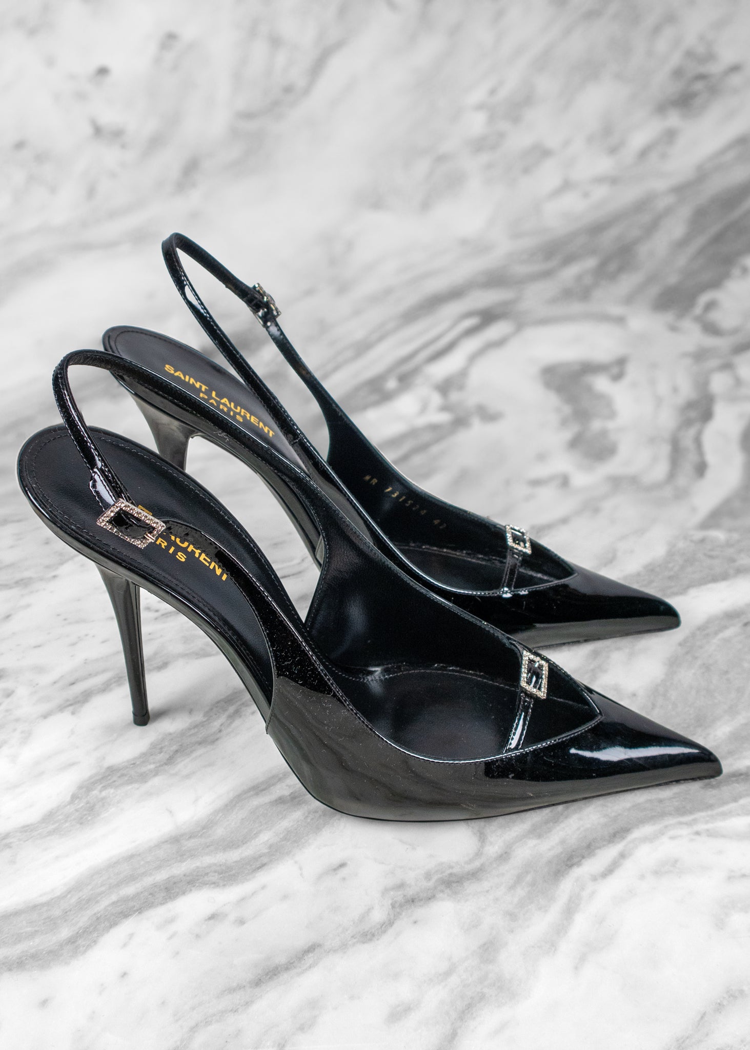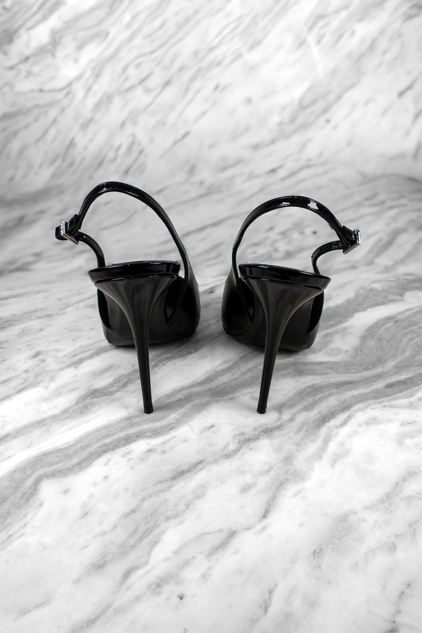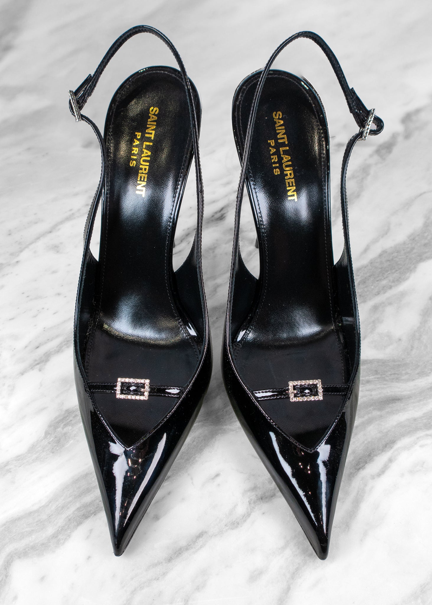 Saint Laurent Black Luna 105 Patent Slingback Pump