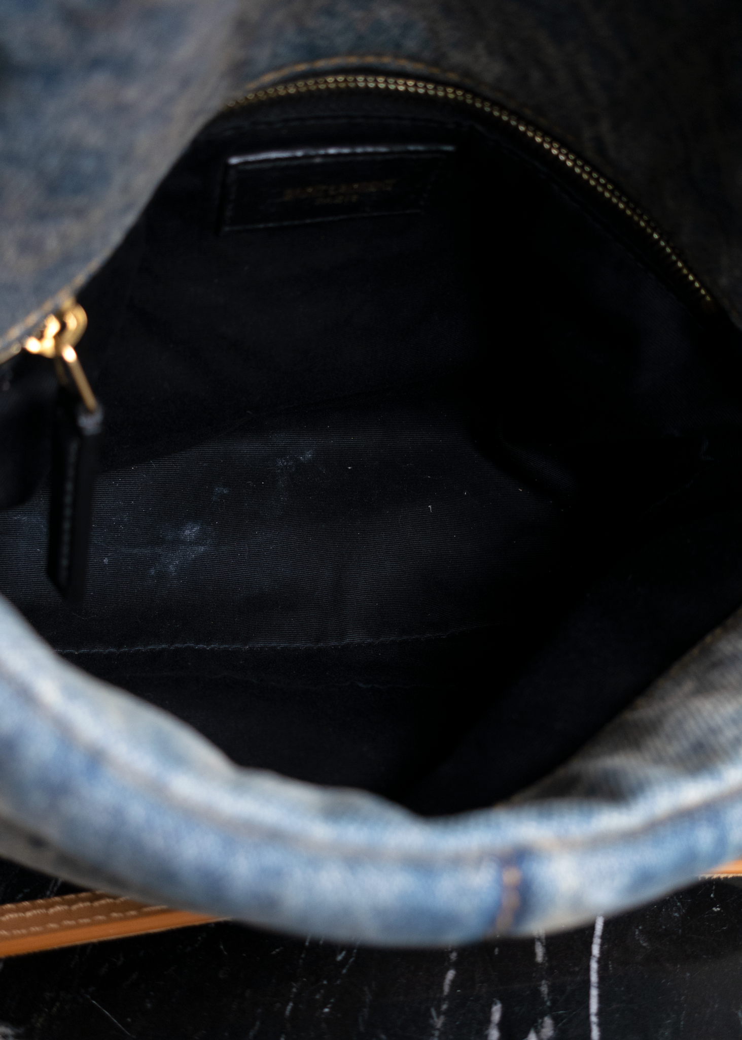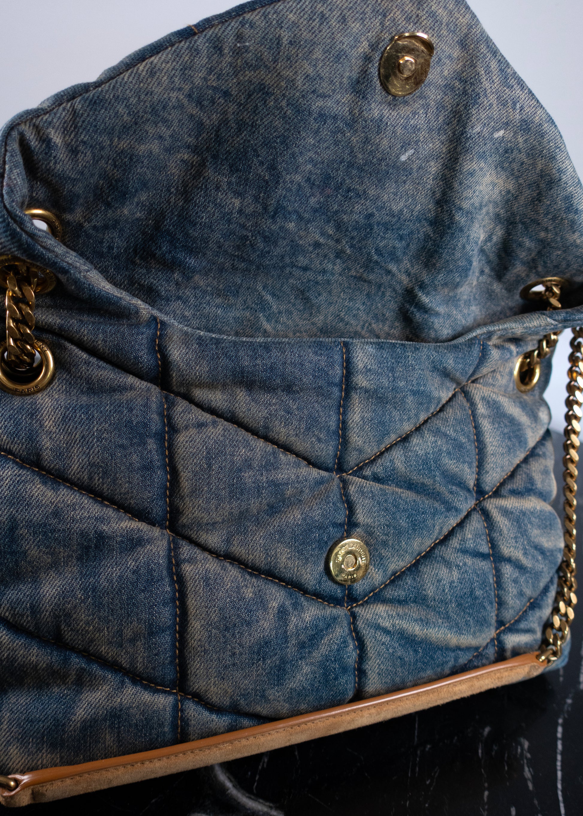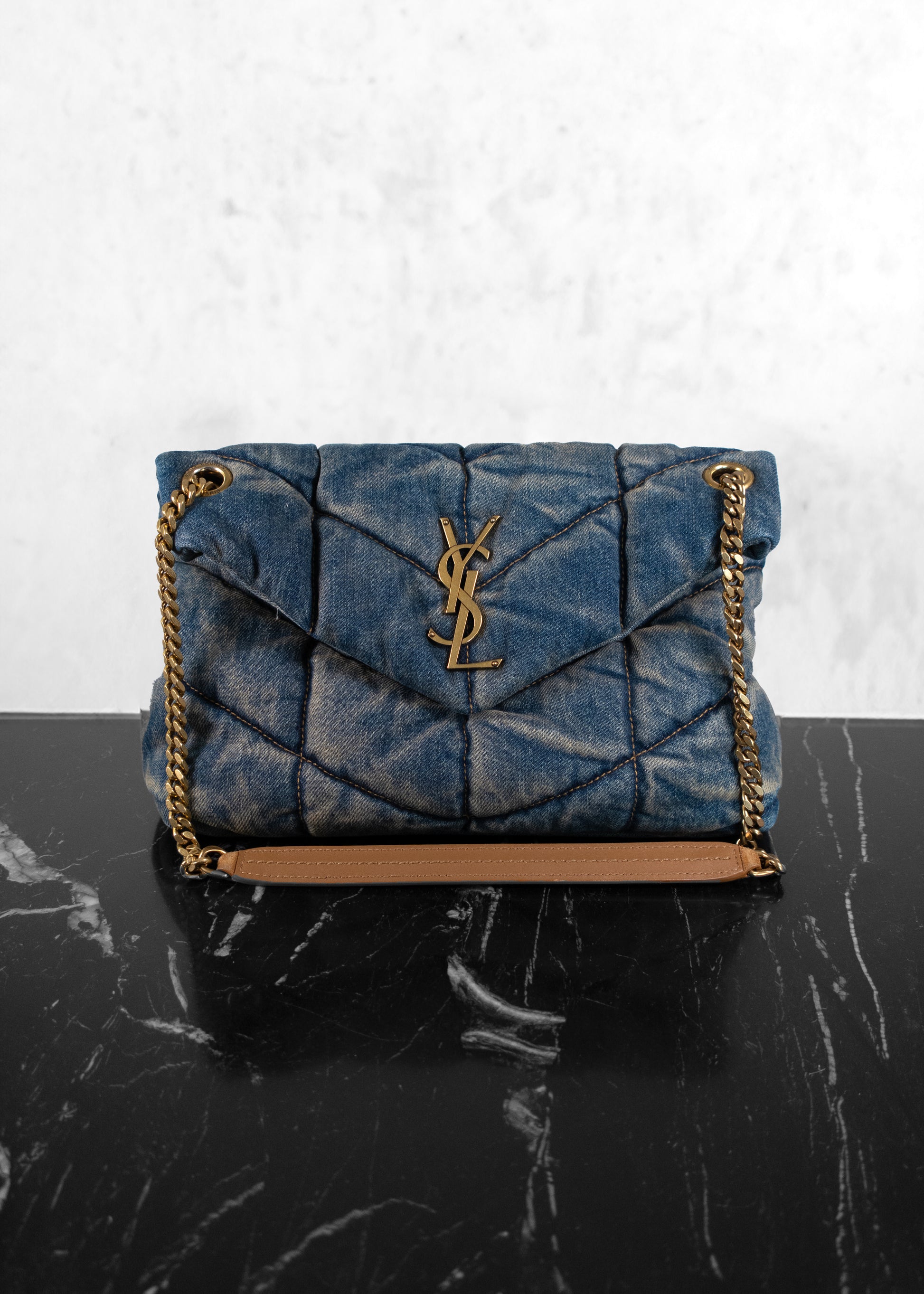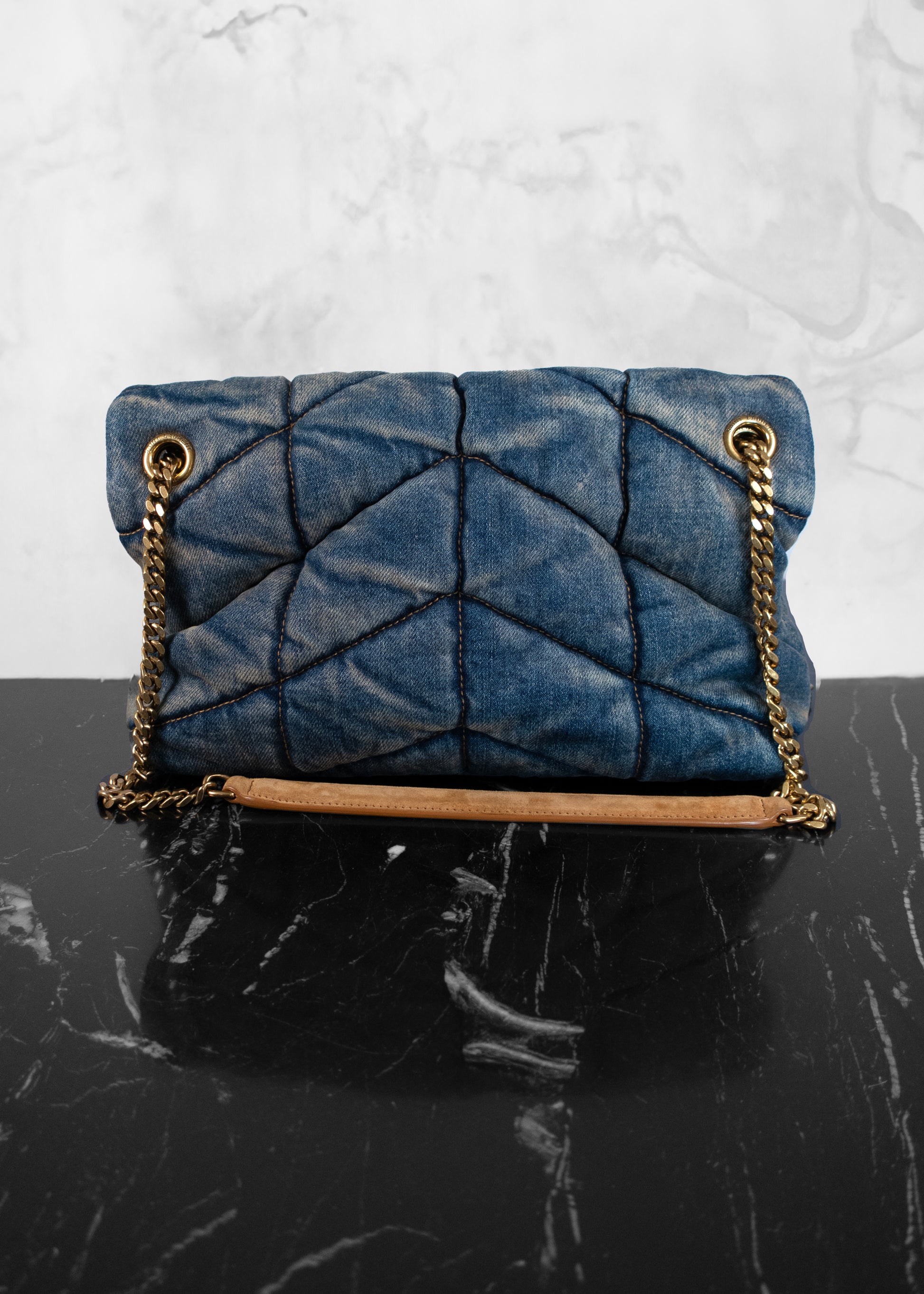 Saint Laurent Denim Quilted Blue Cinnamon Small Loulou Puffer Monogram Chain Satchel