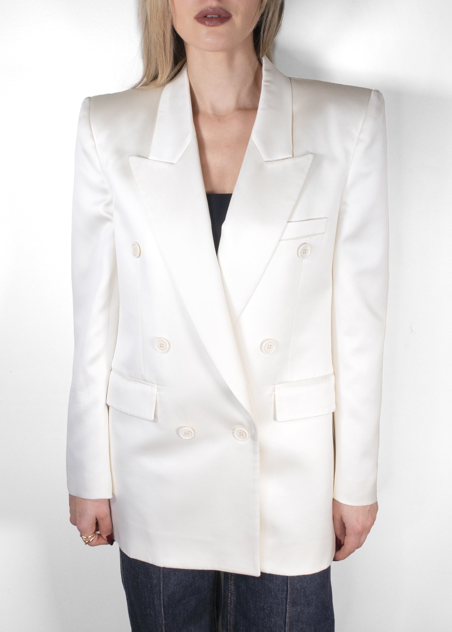 Saint Laurent Double-Breasted Silk-Satin Blazer