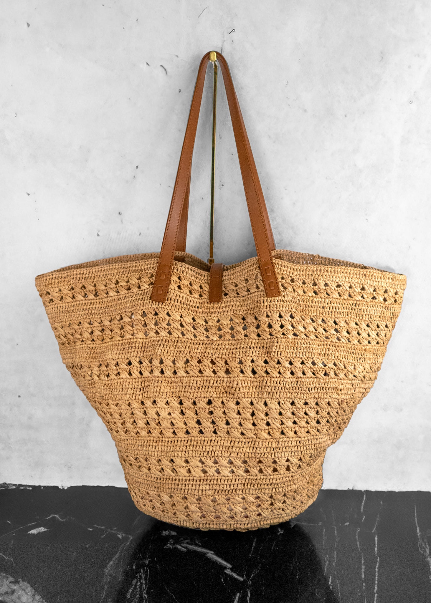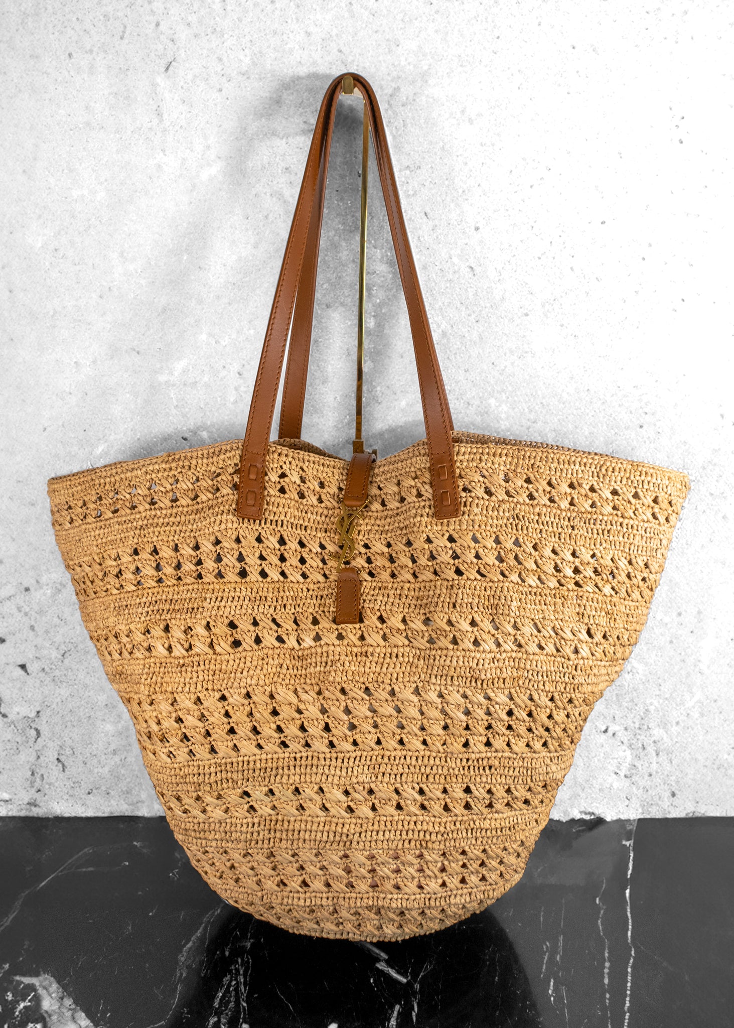 Saint Laurent Raffia Calfskin Medium Panier Tote