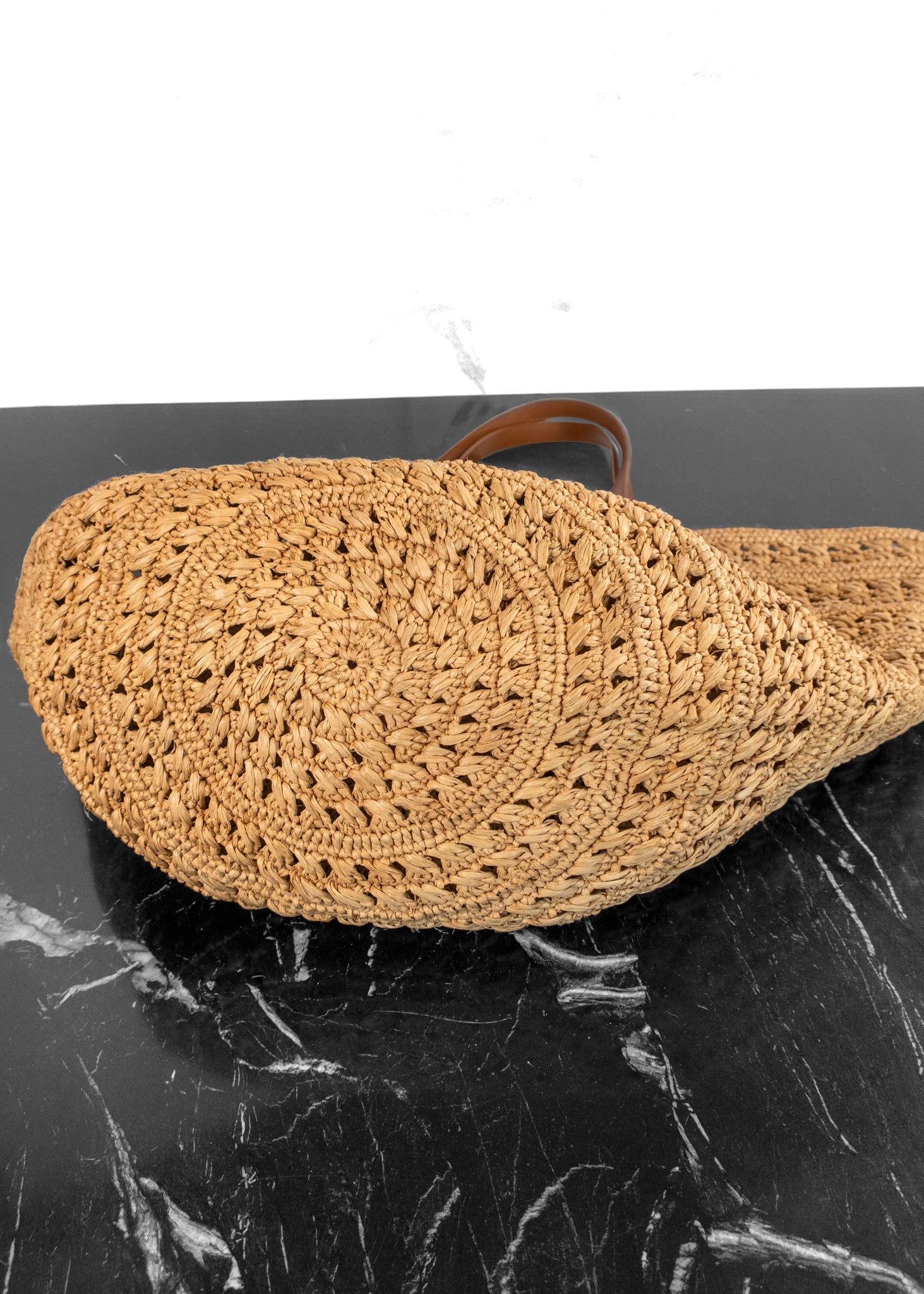 The Saint Laurent Raffia Calfskin Medium Panier Tote is a luxurious blend of sophistication and casual elegance. Crafted from premium raffia and accented with smooth calfskin leather, this tote features a spacious interior, perfect for everyday essentials or a stylish day out. The iconic YSL logo and leather handles add a touch of classic charm, making it an ideal accessory for the fashion-forward individual. Whether you're heading to the beach or the city, this versatile tote effortlessly elevates any outfit.