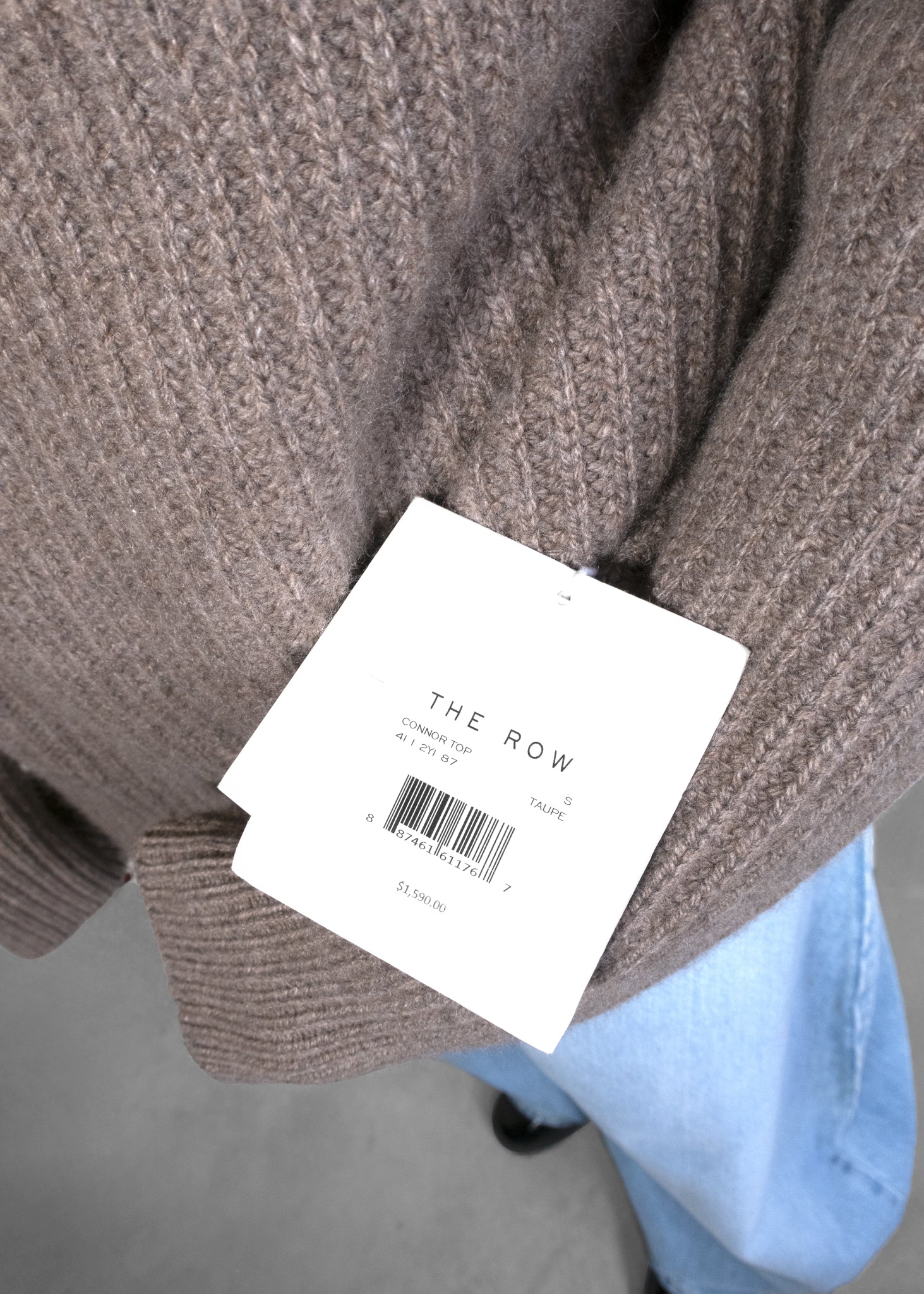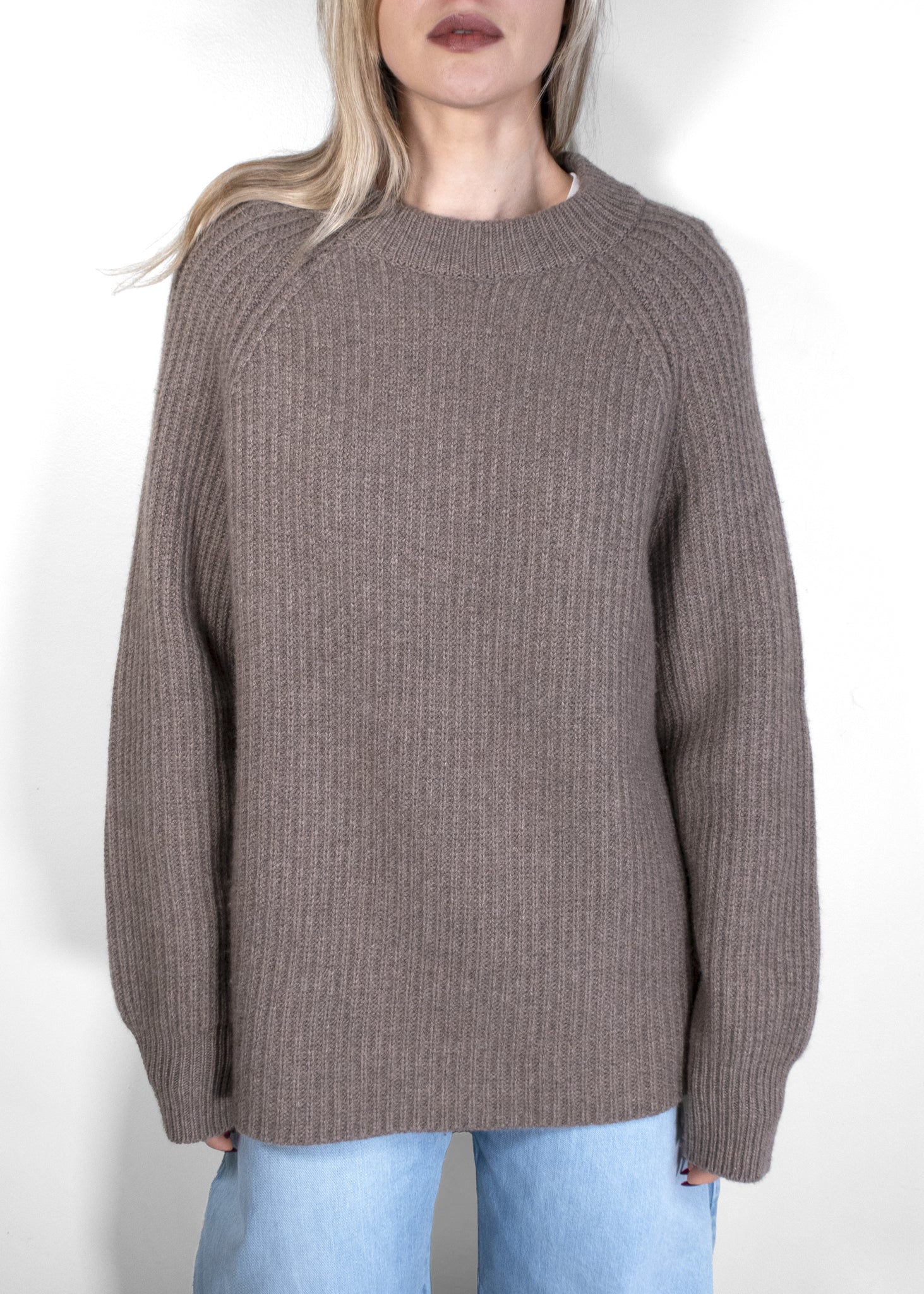 The Row Connor Taupe Ribbed Cashmere Jumper
