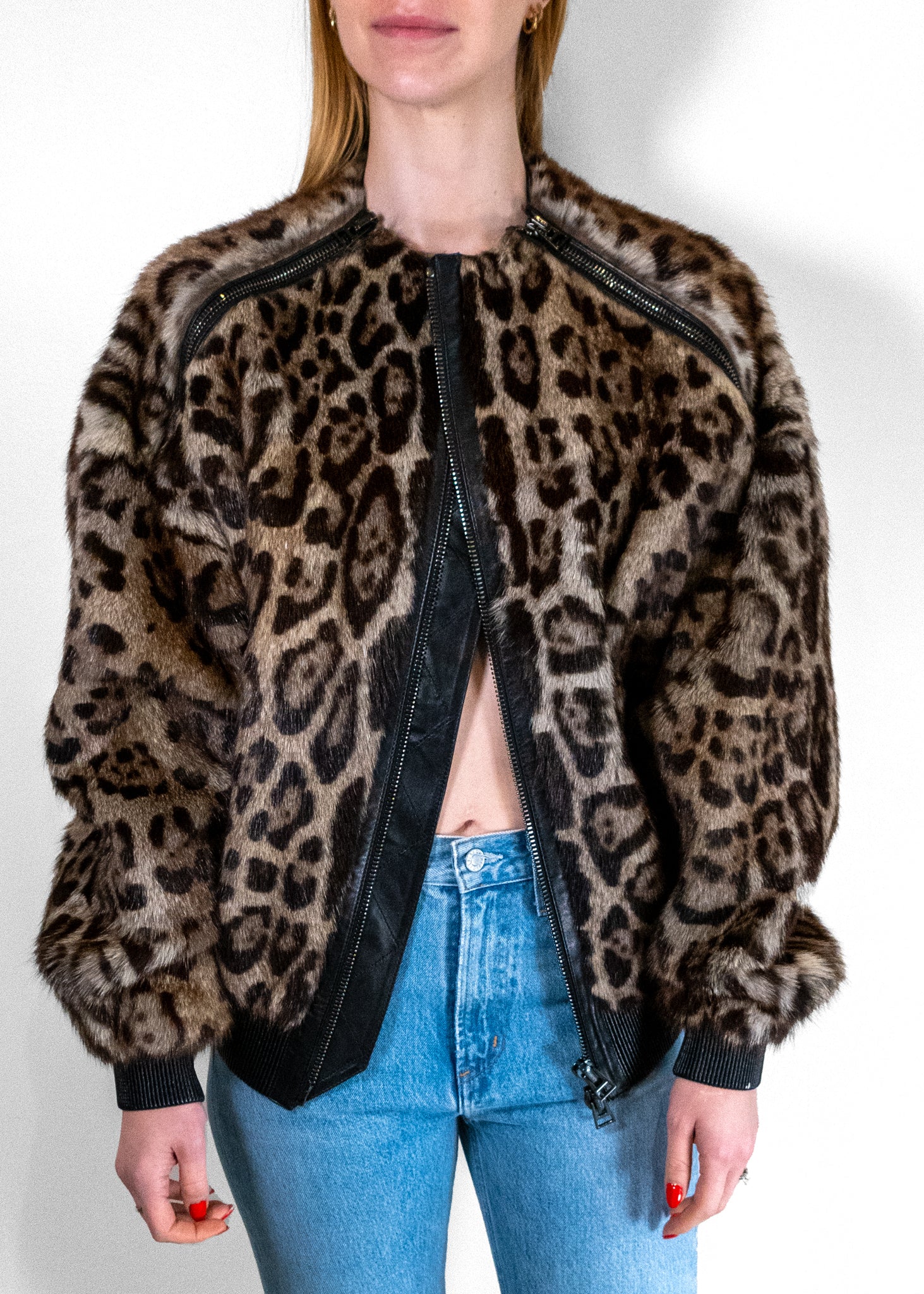 The Tom Ford Leopard Print Bomber is a luxurious and bold statement piece, blending the classic bomber jacket silhouette with an eye-catching leopard print pattern. Crafted with high-quality materials and meticulous attention to detail, it offers a contemporary twist on a timeless style. This jacket embodies Tom Ford's signature blend of sophistication and edge, making it a standout choice for those who want to make a statement with their fashion. Whether dressed up with tailored trousers or paired with casual denim, the Leopard Print Bomber adds a touch of fierce elegance to any outfit. New with tags!