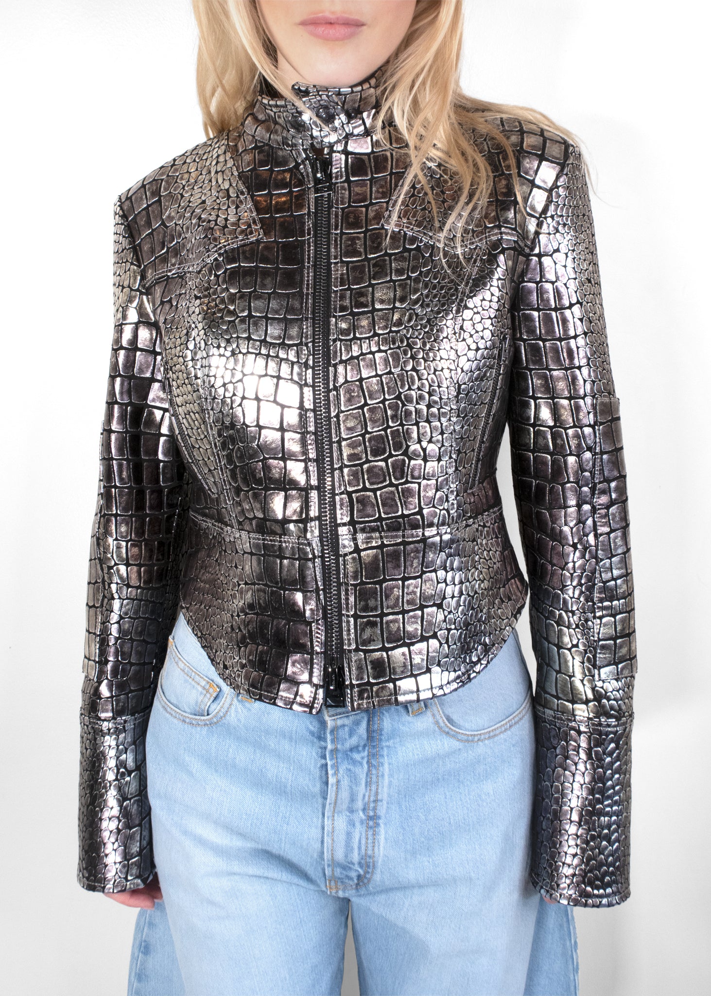 Tom Ford Metallic Croc Embossed Leather Jacket