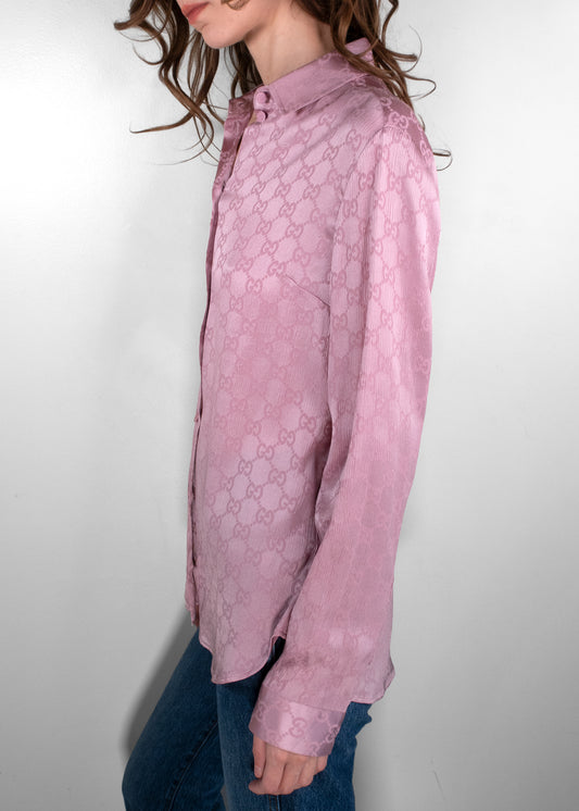 Gucci Pale Pink Silk Monogram Button Down Shirt